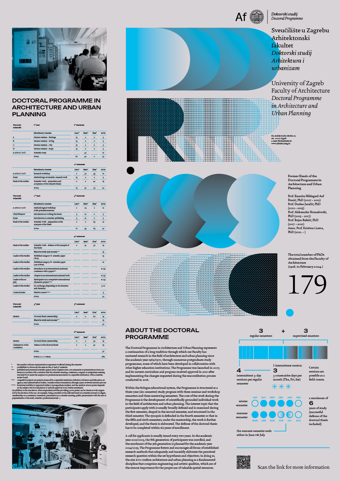 Dan doktorata 2023, Doktorskog studija Arhitektura i urbanizam, održan je u četvrtak 16. studenog od 10:00 do 17:00 u prostorijama UHA-e / DAZ-a, Trg bana Jelačića 3/I.