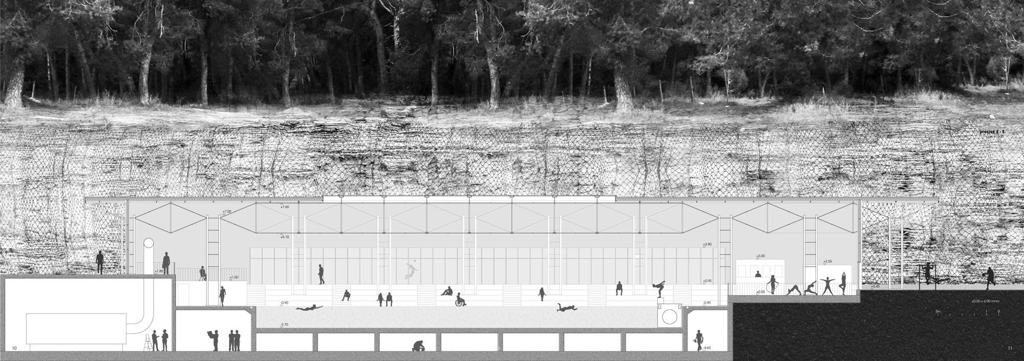 Autor: Rudolf MartinovićMentori: Tonči Žarnić, Marina BertinaAkademska godina: 2018. Katedra za arhitektonsko projektiranjeKabinet za zgrade društvenog standardaRadionica arhitektonskog projektiranja 2 – Sport +