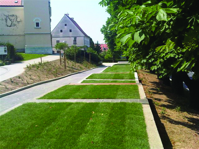 The highest and the lowest plateau of the square are connected by a ramp whose landings follow the height of the cascades which have benches to sit and relax and grassy surfaces, which are also visually oriented towards the lowest plateau. The lowest plateau is also the largest one, designed as the main area where people linger (before and after mass, for open air masses, etc.). There is a plan to construct a low platform on its south-western part to be used as a plinth for sculptures or as an altar at open air mass; at the southern part of the steps it is connected to the driveway of the rectory in order to achieve the best pedestrian connections and flows in the wider area of the city. The structural pattern of cascades emerged (apart from adjustments to altitudes of the existing terrain) from the geometry of the line of trees along Braće Kazić St., and the lines that separate individual cascade levels follow the positions of existing trees, fitting into the geometry of the current environment.