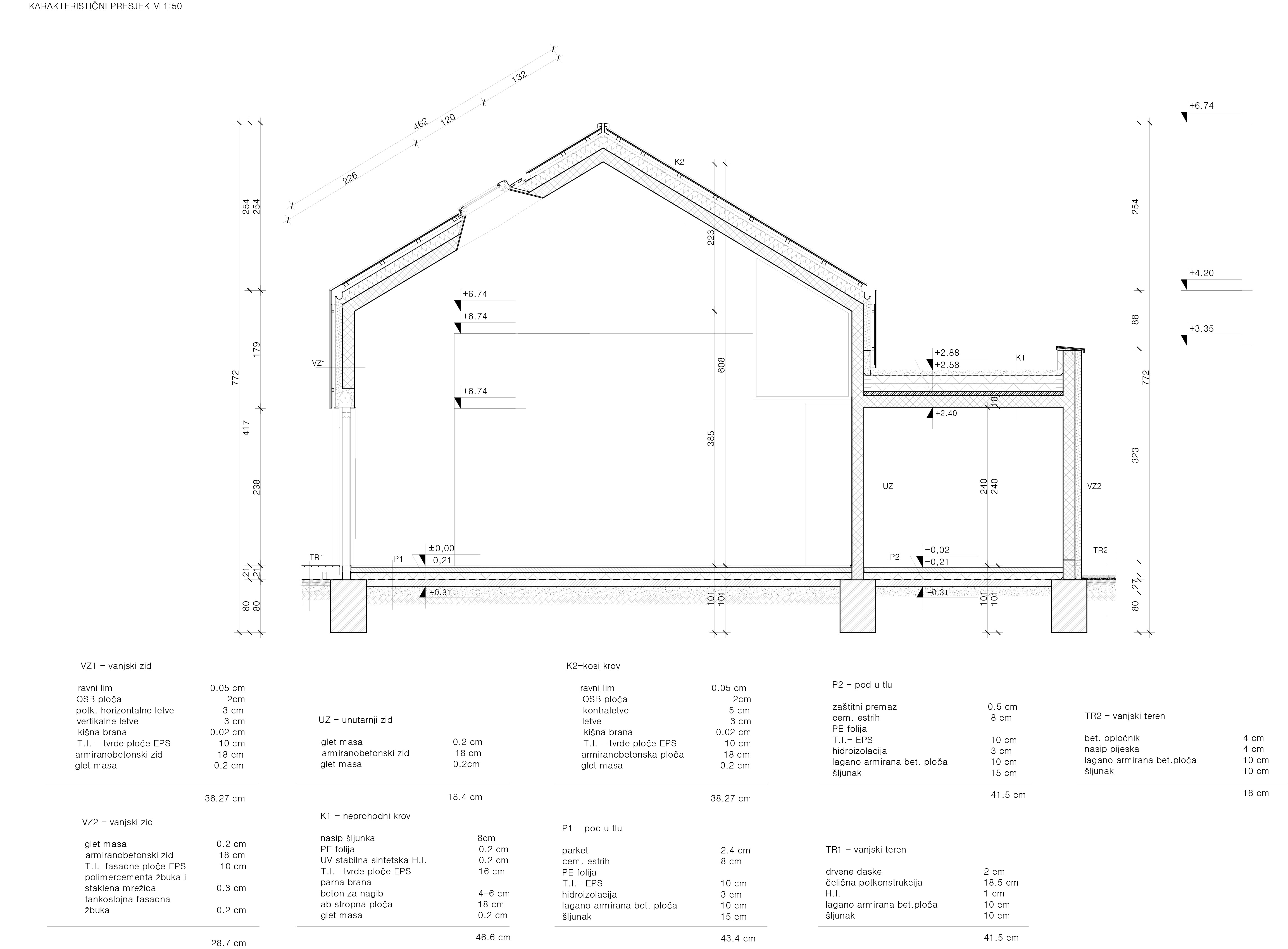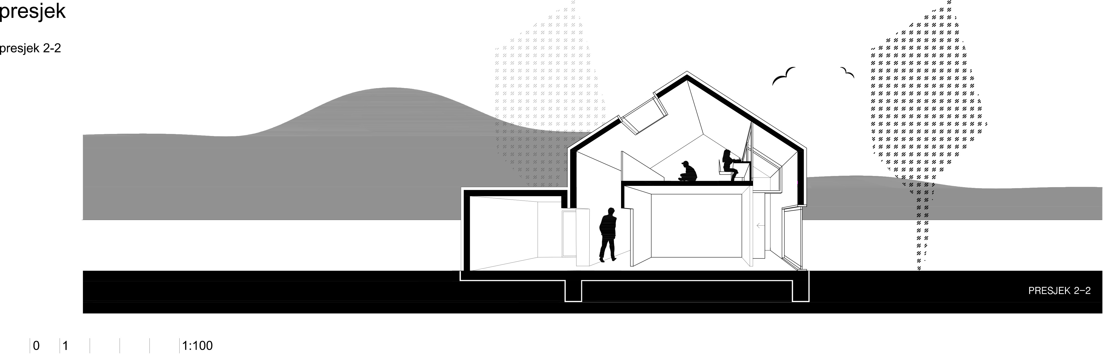 physical characteristics that affect the quality of housing/living. The result is the creation of an author's project of a family house. Conceptual design is additionally supplemented through a series of technical aspects within the framework of the section of architectural structures, such as the load-bearing structure of the house, the use of materials, the elaboration of specific details, solution for installations, etc. The final results of the course are validated through final presentations at the level of the section. All works are displayed through various media: illustrations, final models / model and a screening as part of the reading of the paper and discussions with mentors and guest critics. Selected papers are additionally presented at a public exhibition, and Prof emeritus Nikola Filipović DSc traditionally awards a prize for the most successful project.