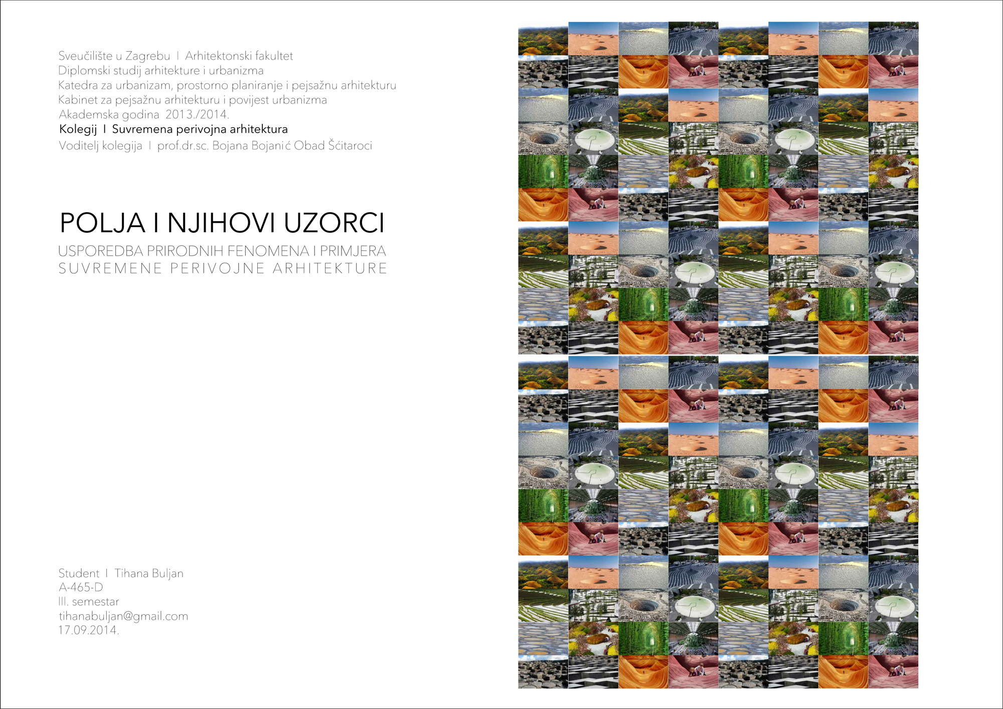 Fields and their patterns Autorica: Tihana BuljanMentorica: Bojana Bojanić Obad Šćitaroci Katedra za urbanizam, prostorno planiranje i pejsažnu arhitekturuKabinet za pejsažnu arhitekturuSuvremena perivojna arhitektura Buljan, Tihana_Suvremena perivojna arhitektura_seminar