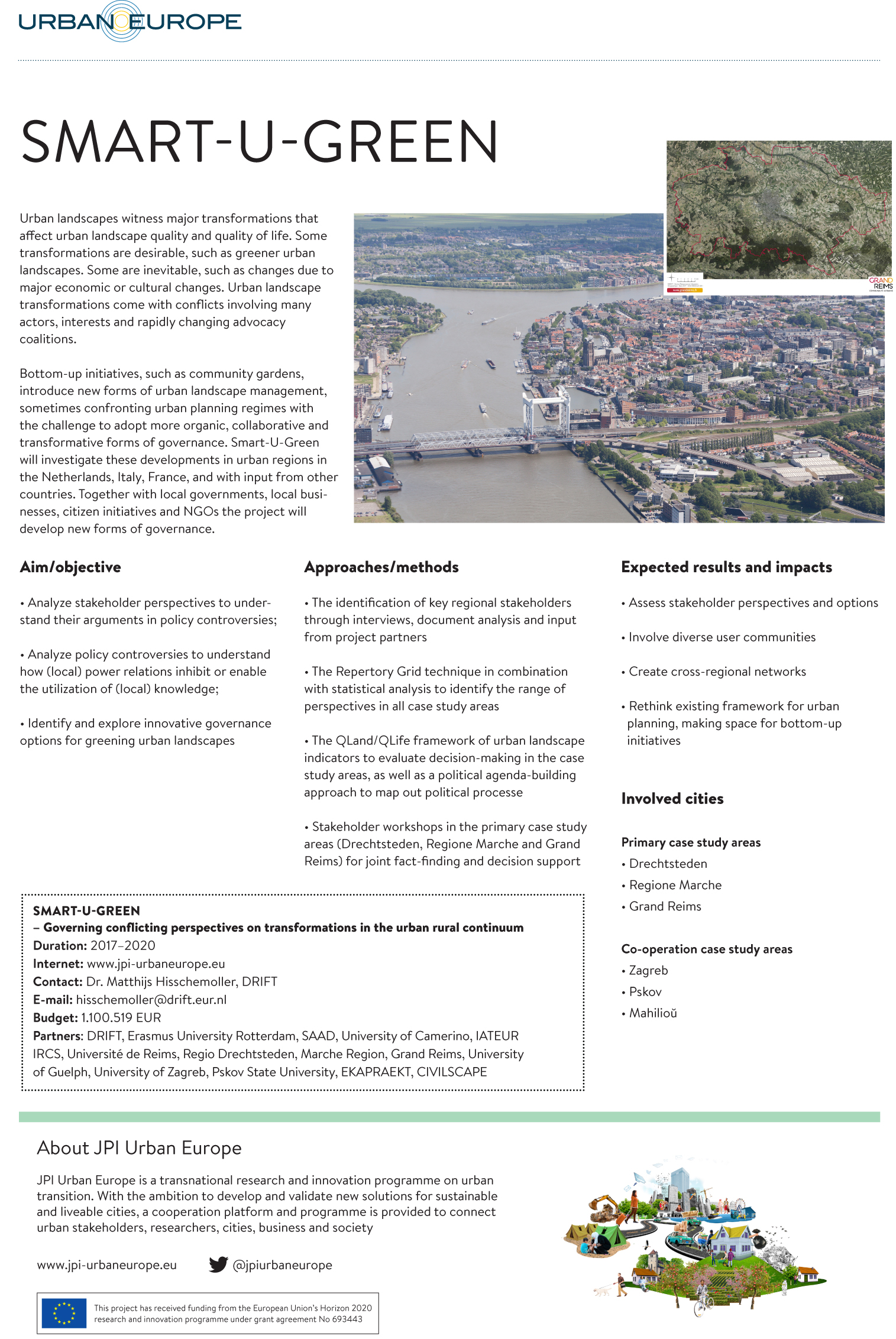 Some transformations are desirable, such as greener urban landscapes. Some are inevitable, such as changing consumer habits affecting downtown shopping areas. Urban landscape transformations come with conflicts involving many actors. Bottom-up initiatives, such as community gardens, introduce new forms of urban landscape management. Smart-U-Green will investigate these developments in urban regions in the Netherlands, Italy, and France with input from other countries. Together with local governments, local businesses, citizen initiatives and NGOs the project will develop new forms of governance.