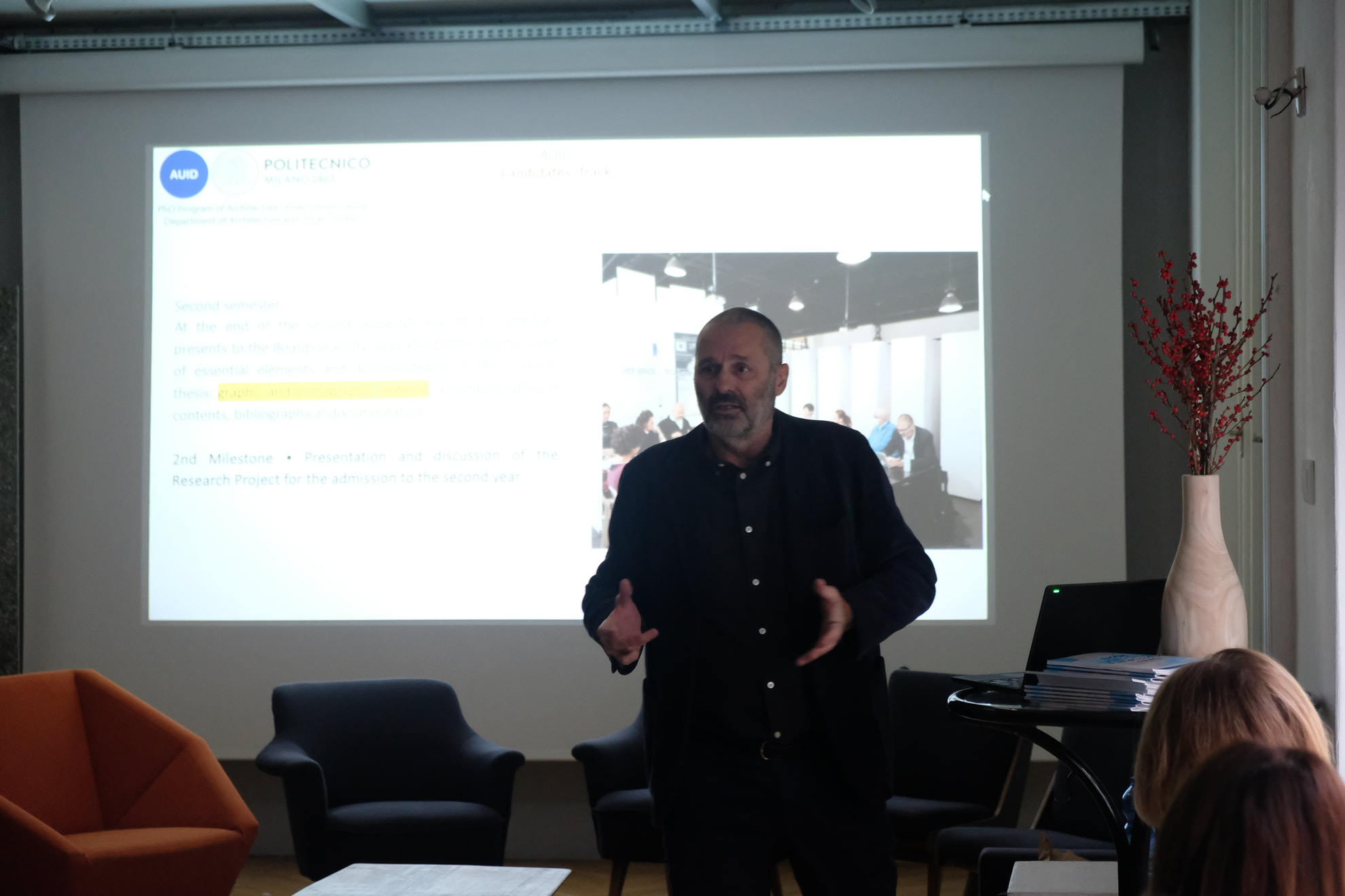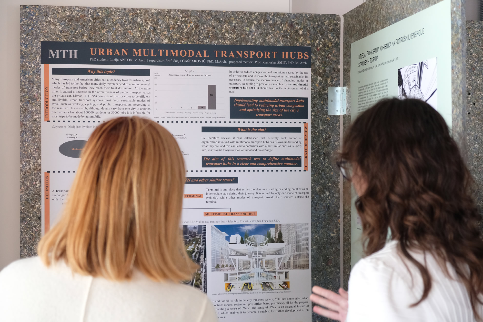 Nakon pozdravnog govora voditeljice doktorskog studija izv. prof. dr.sc. Careve, kroz poster prezentaciju predstavljena su 24 rada naših doktoranada. U kategoriji radova čiji su autori obranili sinopsis posebno su istaknuti i nagrađeni radovi kolege Marina Duića i kolegice Nine Bačun, a u kategoriji radova u ranoj fazi istraživanja oni kolege Karla Seitza i kolegice Nikoline Raguž-Lučić. Održana je i javna tribina alumna Doktorskog studija Arhitektura i urbanizam koju je moderirala asistentica i naša doktorandica Jana Horvat, a u kojoj su sudjelovali naši bivši studenti doc. dr.sc. Dubravko Bačić, doc. dr.sc. Sanja Matijević Barčot, dr.sc. Filip Šrajer i izv. prof. dr.sc. Nikolina Vezilić Strmo. U popodnevnom dijelu su gosti, prof. dr.sc. Tadeja Zupančič s Arhitektonskog fakulteta u Ljubljani i prof. dr.sc. Alessandro Rocca s Politecnico di Milano predstavili svoje doktorske programe. Tema doktorata u arhitekturi i urbanizmu nastavila se tijekom sljedeća dva dana kroz CA2RE konferenciju koja je okupila mnoge istraživače iz Europe i svijeta.