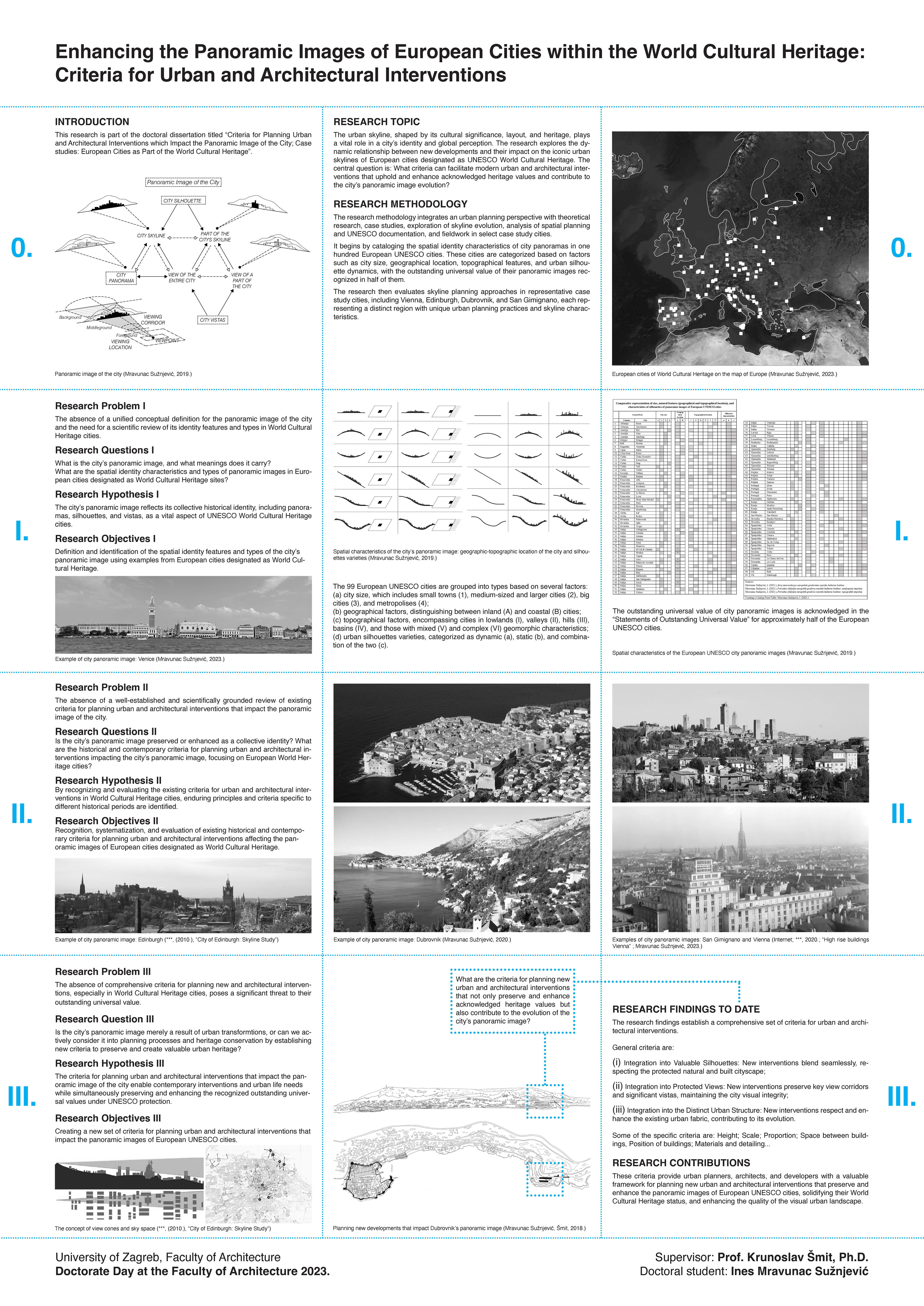 | Ines Mravunac | prof.dr.sc. Krunoslav Šmit | Kriteriji za planiranje urbanističko-arhitektonskih zahvata s utjecajem na panoramsku sliku grada ‒ primjeri europskih gradova svjetske kulturne baštine | 15. rujna 2020. | 12. redovita sjednica Senata Sveučilišta u Zagrebu u 351. akademskoj godini (2019./2020.) | |
