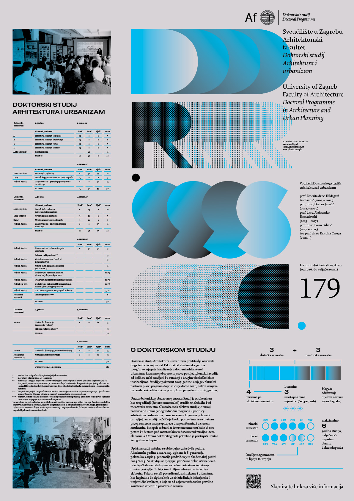 Dan doktorata 2023, Doktorskog studija Arhitektura i urbanizam, održan je u četvrtak 16. studenog od 10:00 do 17:00 u prostorijama UHA-e / DAZ-a, Trg bana Jelačića 3/I.