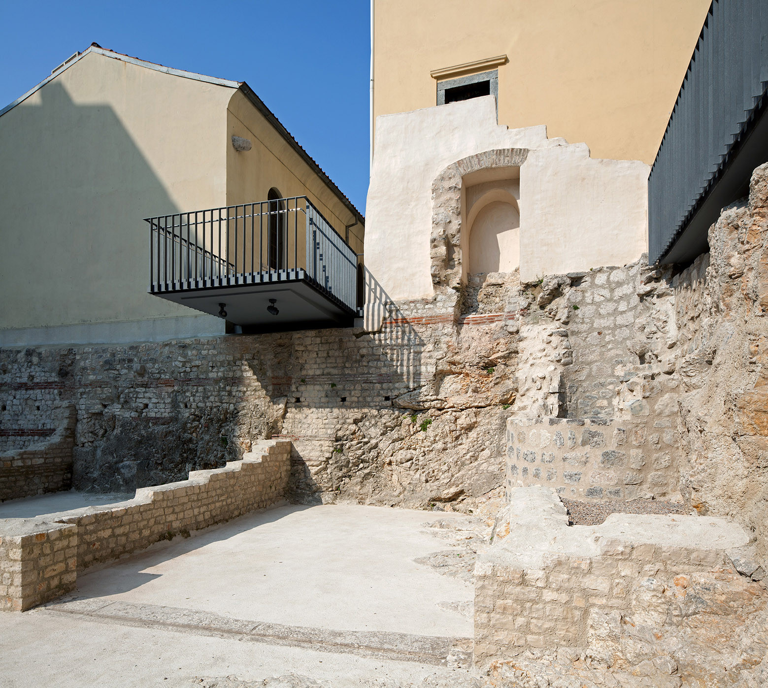 Postavom balkona uz istočno zabatno pročelje crkve sv. Sebastijana, omogućen je atraktivan novi doživljaj i vizura na arheološki trg. Balkonom se aktivira nova scenska mogućnost i pozicija rasvjete.