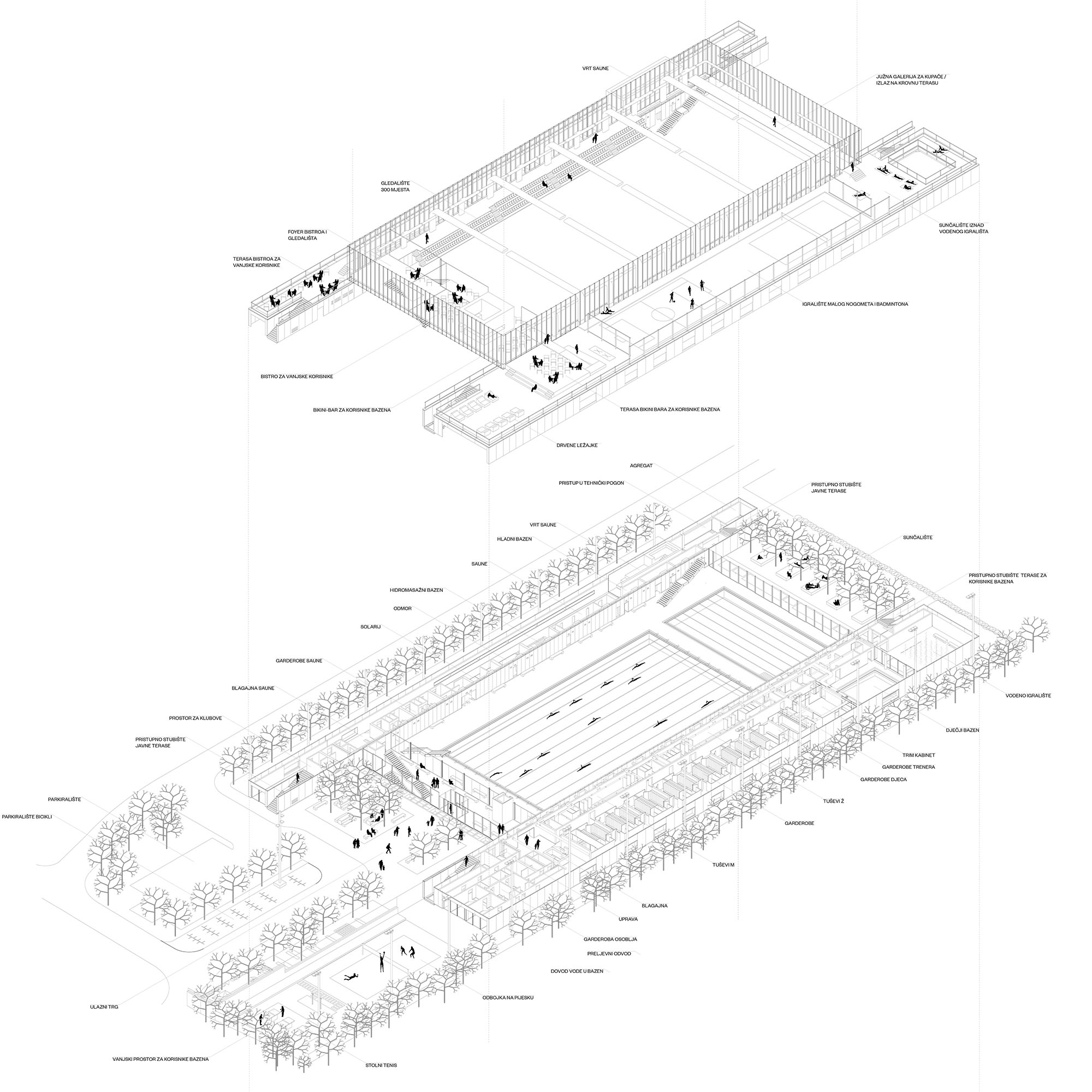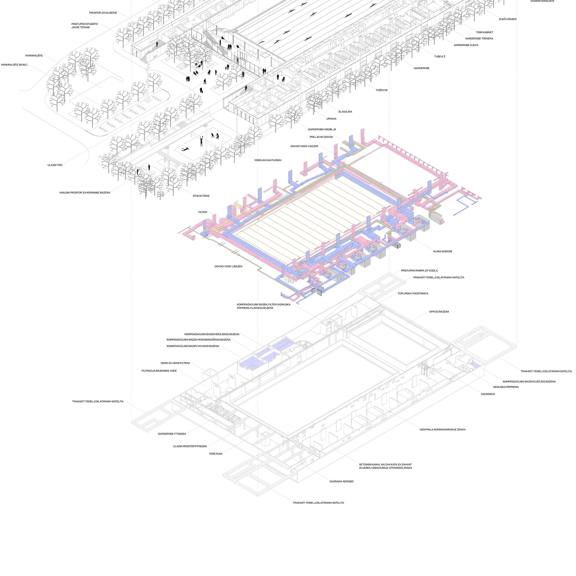 Autori: Vjera Bakić, Matthias KulstrunkSuradnici: Ana Martina Bakić, Dubravko Bačić, Bogdan Budimirov, Martina Jukić, Marko Cvjetko Betonska i čelična konstrukcija: Ivan Palijan, Siniša Lulić, Đuro Uzelac, Vladimir Crneković Termotehnička postrojenja i strojarske instalacije: Branko Šegotić, Miroslav Županić, Tomislav Kralj, Zlatko Jakoplić, Tihomir Vrtačnik Bazenska tehnika: Nenad Šutevski, Dario Butković Elektro instalacije: Branko Čorko Instalacije vode i kanalizacijeSrđan Grujić Protupožarni elaborat: Melita Kanceljak Marelić