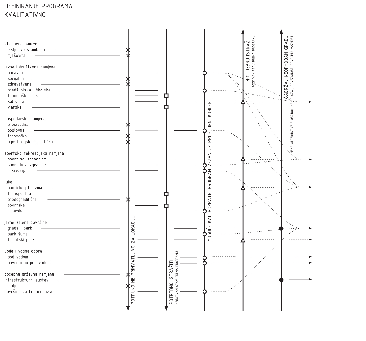 Planirati i sačuvati znatan dio površine za gradski park. Spojiti što više programa u jedinstven prostor