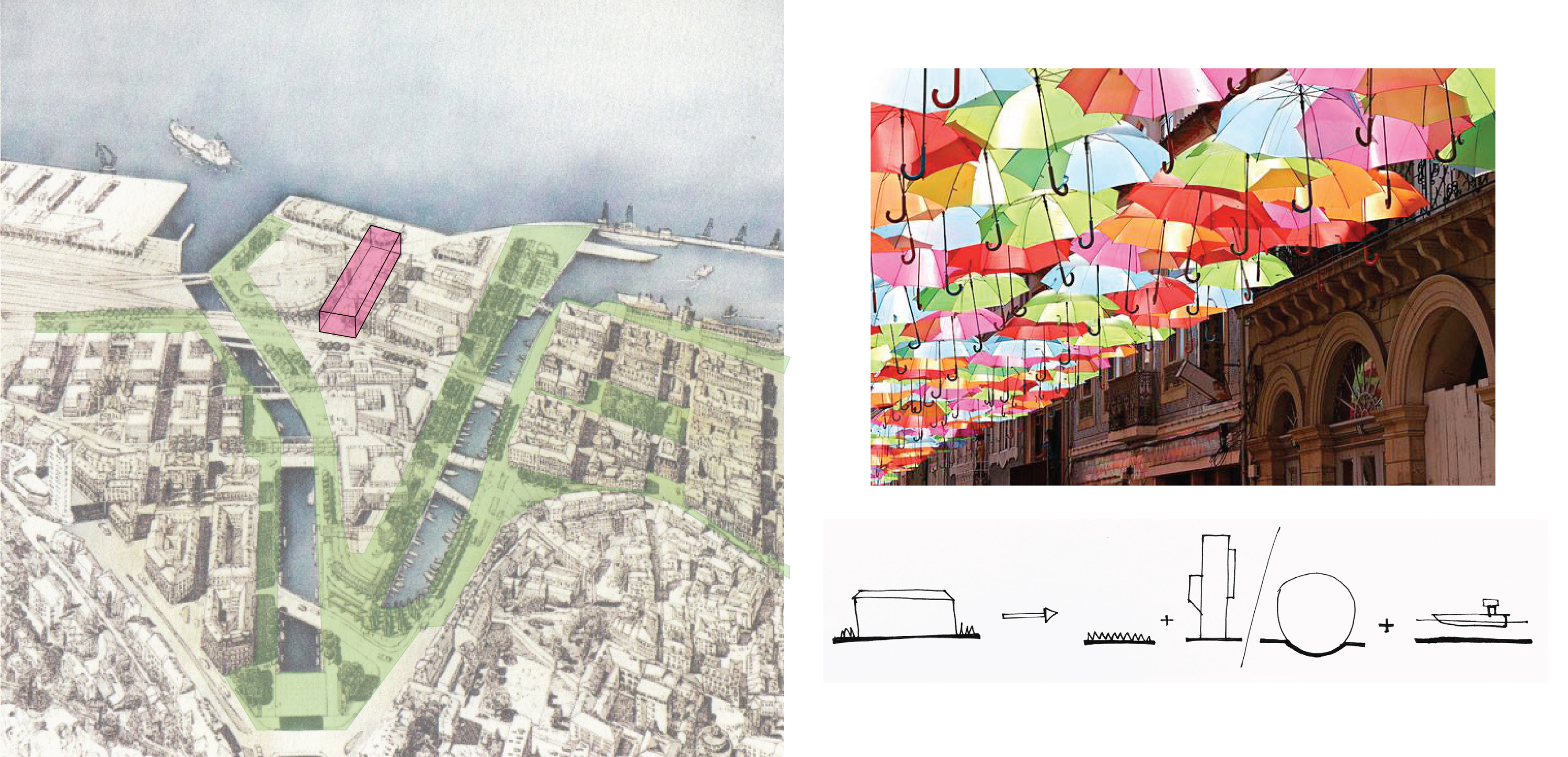 i tako racionalno koristiti prostor tj. imati polivalente multifunkcionalne prostore i objekte. Neprekidno korištenje izgrađenog i neizgrađenog prostora. 24 satno programiranje. Mogućnosti kao spajanje stadiona, trga i kupališta ili muzeja i kazališta ili rekreacije, parka i garaže. Prostori različitih karaktera, otvoreni i veliki, zatvoreni visoki, izduženi i sl. Uključiti *Kazališni blok* koji ima kapacitet preuzeti dio programa i nadopuniti cjelinu.