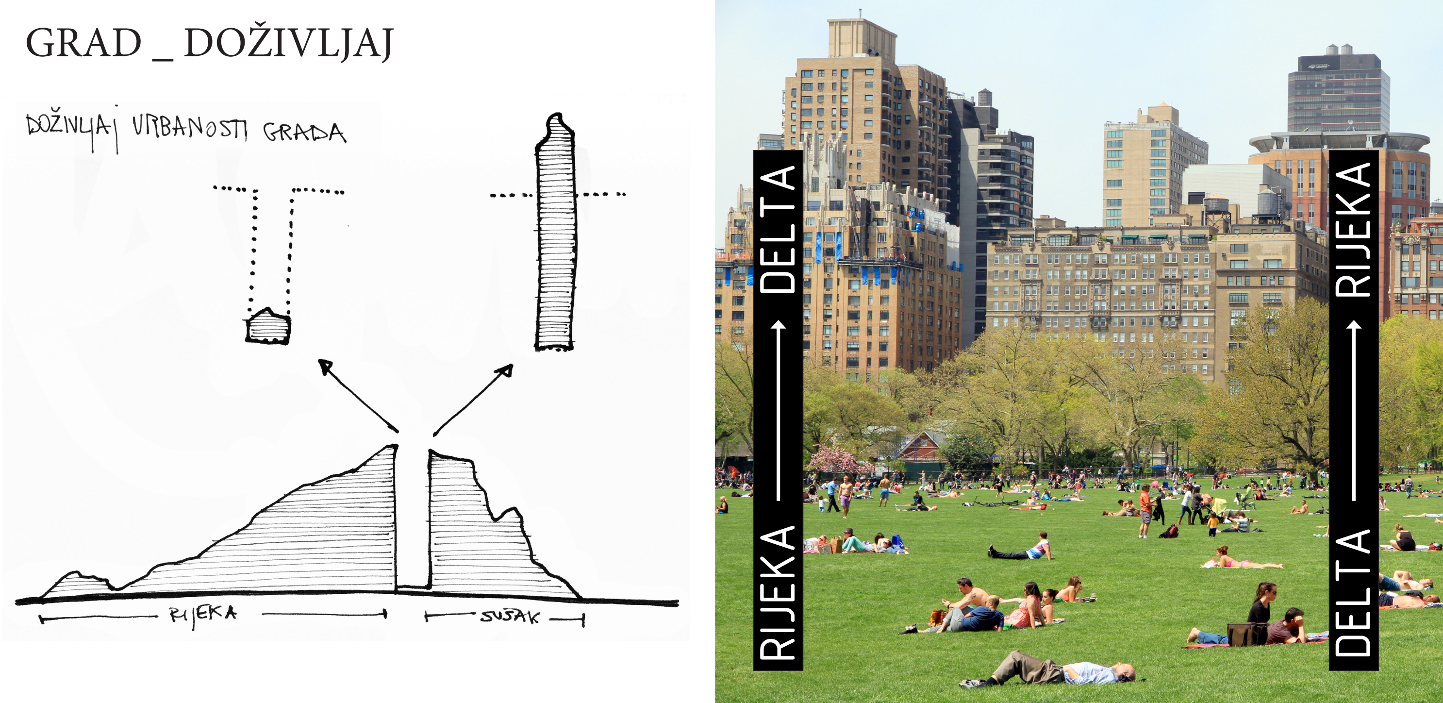 GRADSKI PARK I GRADSKI TRG - na području cijelog grada nikada nije realiziran park koji je svojom veličinom i uređenjem na razini grada ili koji bi barem priblizno zadovoljavao te uvjete. Postojeći parkovi i trgovi su iznimno rijetki i uglavnom jako mali te udaljeni od Delte. Prostor Delte je savršen za park svojom prometnom povezanošću, položajem, površinom i neizgrađenošču te ga je neophodno planirati. Trgov u Rijeci ima ali su svojom veličinom i položajem neadekvatni za veća okupljanja i događaje te nisu adekvatni za grad veličine i regionalnog značaja Rijeke. Stoga je neophodno planirati veći, glavni gradski trg koji svojom veličinom i položajem može prihvatiti događaje kao Karneval, koncert srednje veličine, prosvjede i slično.