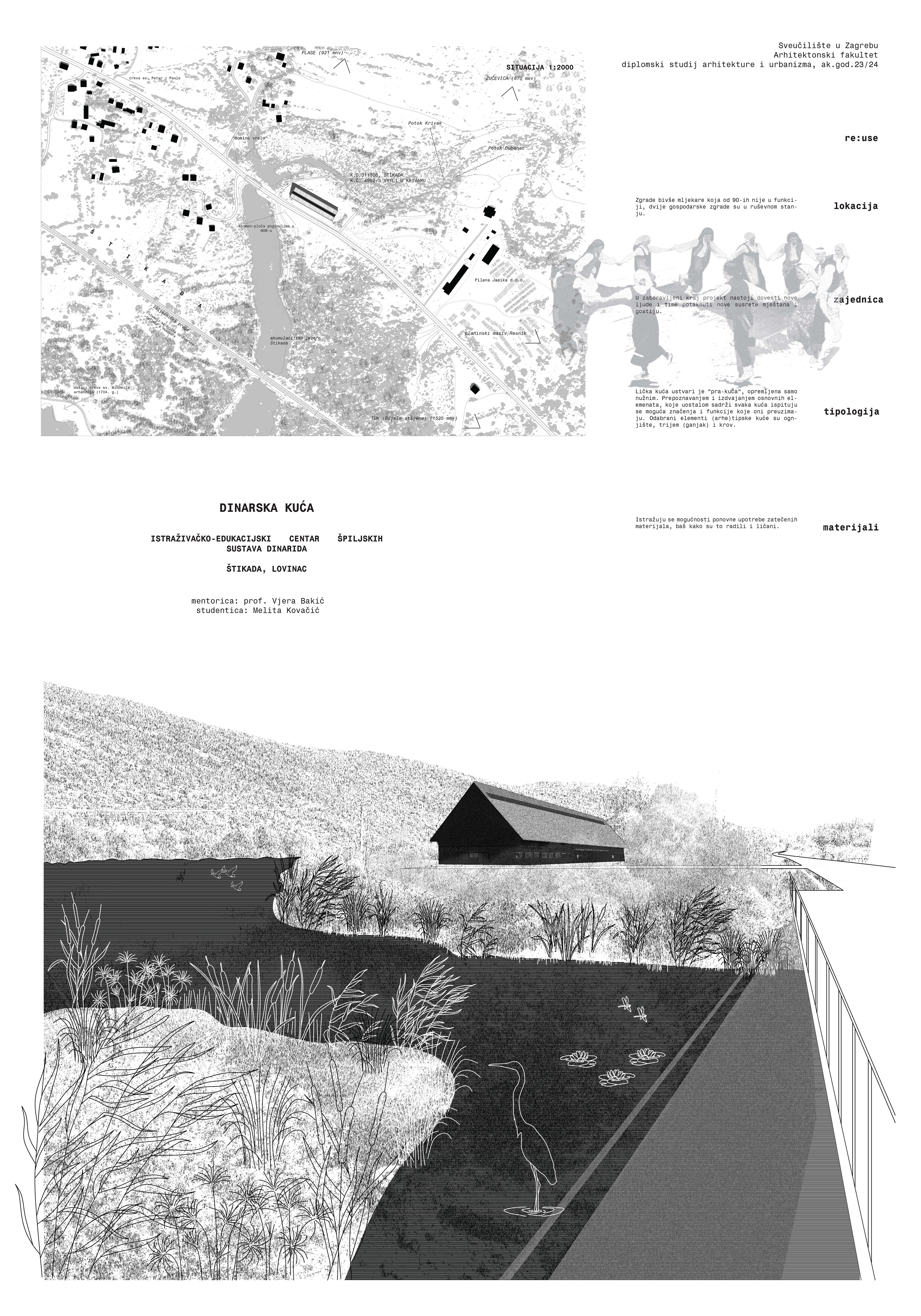 DINARSKA KUĆA Istraživačko-edukacijski centar špiljskih ekosustava na jezeru Štikada kod Gračaca Mentorica: Vjera BakićAutor: Melita KovačićAkademska godina: 2024. Diplomska radionica