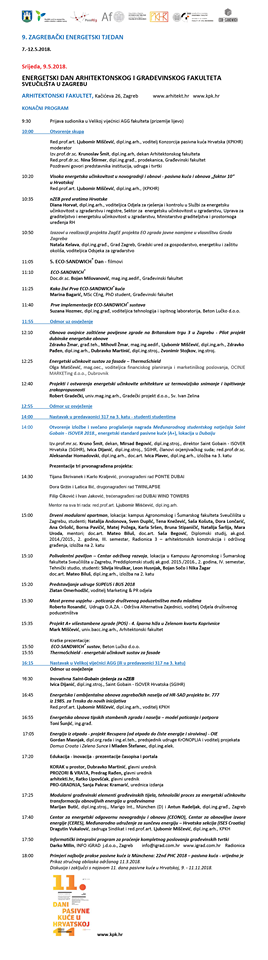 U okviru 9. zagrebačkog energetskog tjedna u srijedu, 9. svibnja 2018. na Arhitektonskom fakultetu Sveučilišta u Zagrebu u suradnji s Građevinskim fakultetom, s početkom u 10.00 sati, održat će se cjelodnevni seminar „Energetski dan Arhitektonskog i Građevinskog fakulteta“.