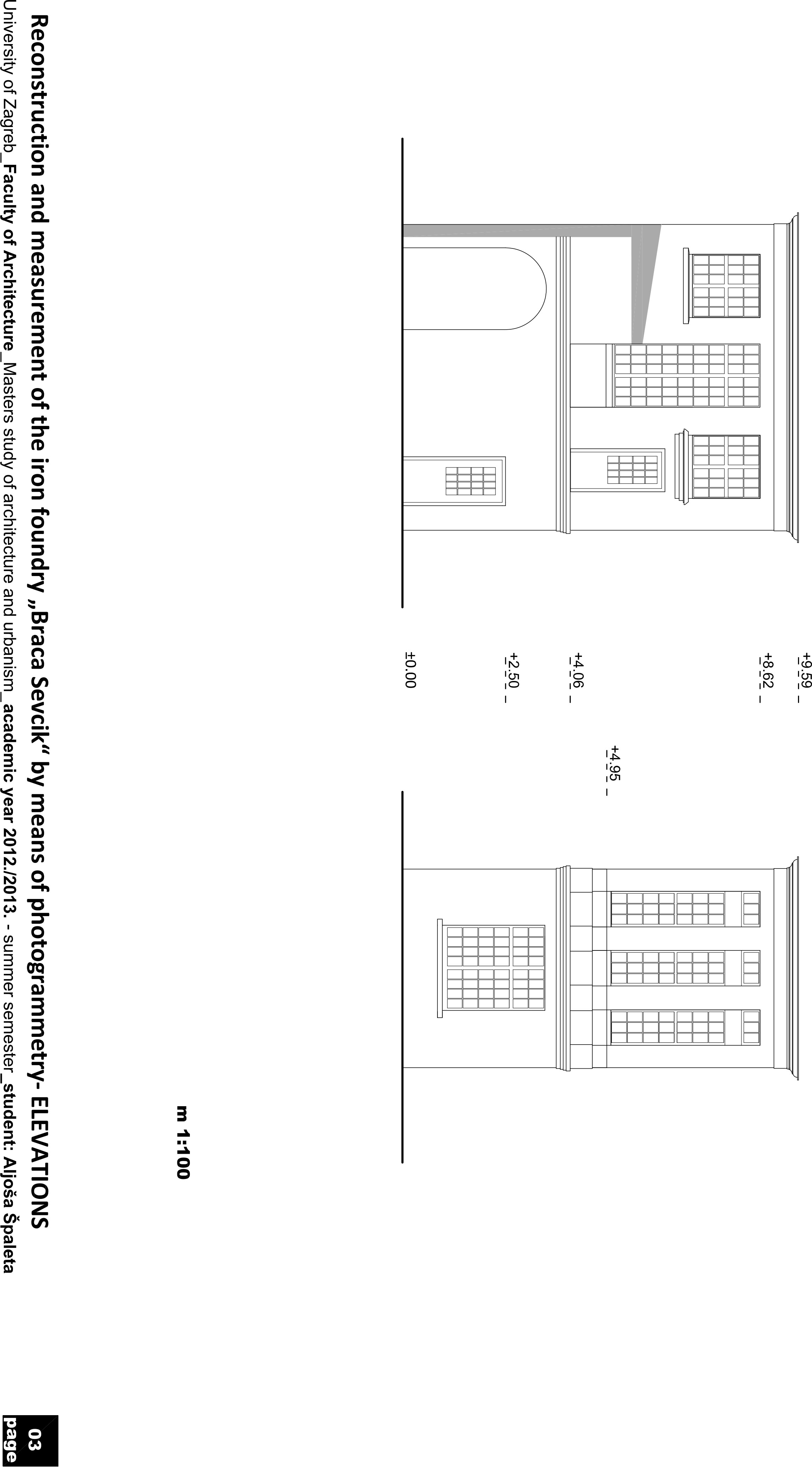 Studenti izbornog kolegija Geometry in Architecture su u okviru završnog programa rješavali probleme arhitektonske fotogrametrije. Imali su mogućnost izbora između rekonstrukcije iz perspektive s horizontalnom i s nagnutom osi pogleda (ptičja ili žablja perspektiva). Polazeći od fotografske snimke nekog objekta ili njegovog modela u 3D virtualnom prostoru, a uz pretpostavku da su poznati neki geometrijski podaci o objektu, metodom mjerenja u perspektivi s horizontalnom ili nagnutom osi pogleda, rekonstruiraju ortogonalne projekcije objekta. Program studenta Aljoše Špalete predočuje rekonstrukciju iz perspektive s horizontalnom osi pogleda bivše Tvornice Braća Ševčik u Zagrebu. Rekonstrukcija se izvodi iz fotografske snimke pri čemu su poznate dimenzije pravokutnika ABCD koji se nalazi u horizontalnoj ravnini prikazanog u mjerilu 1:100.