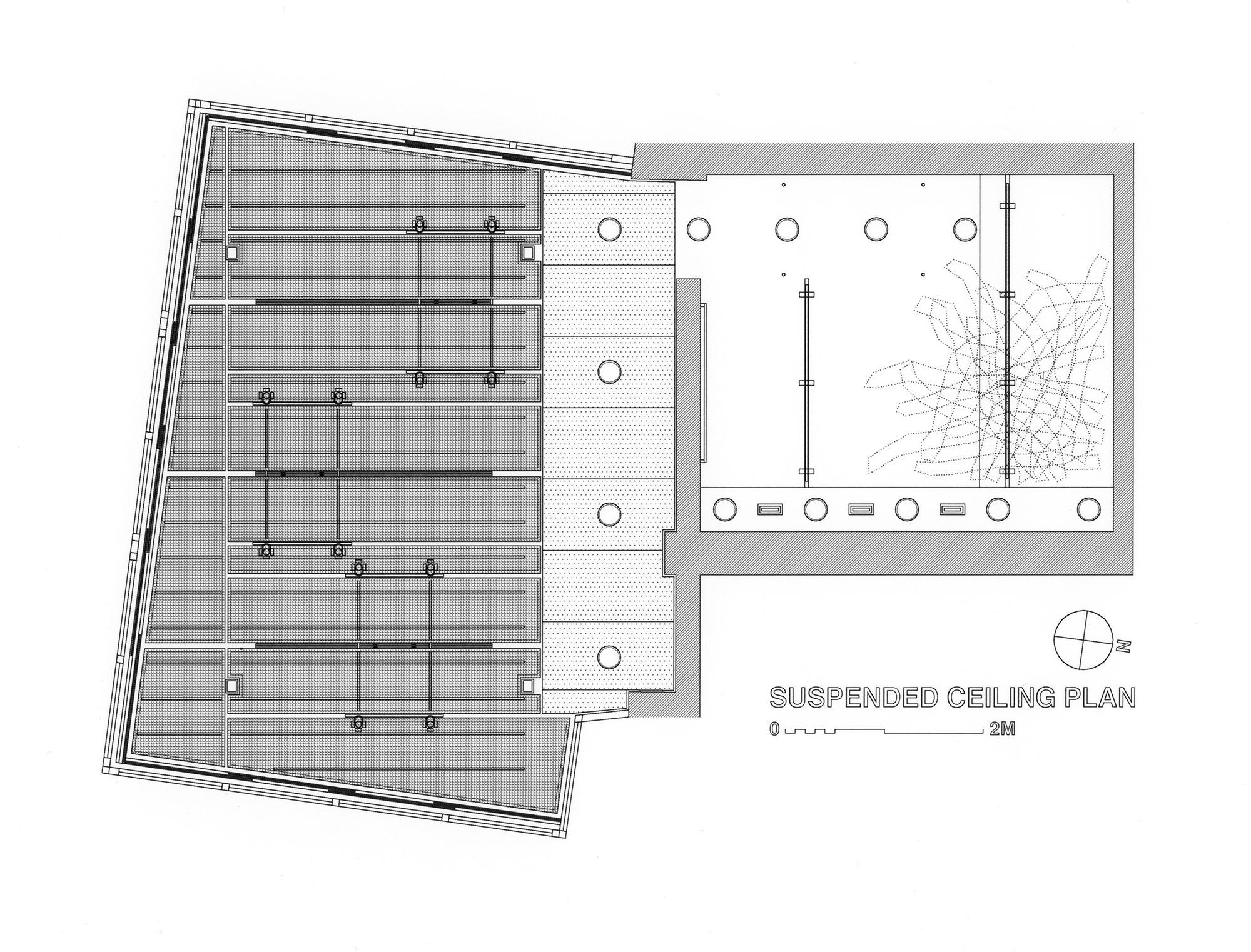 Aneks je danju izložen suncu a noću - pogledima. Tri paralelne putanje pjeskarenog zaslona na staklenoj stijeni stvaraju fine sjenovite uglove ili ujednačeno difuzno osvjetljenje cijelog prostora. Pomičnost u tri sloja artikulira povezivanje s vanjskim svijetom i tajnovitost kazališta sjena.
