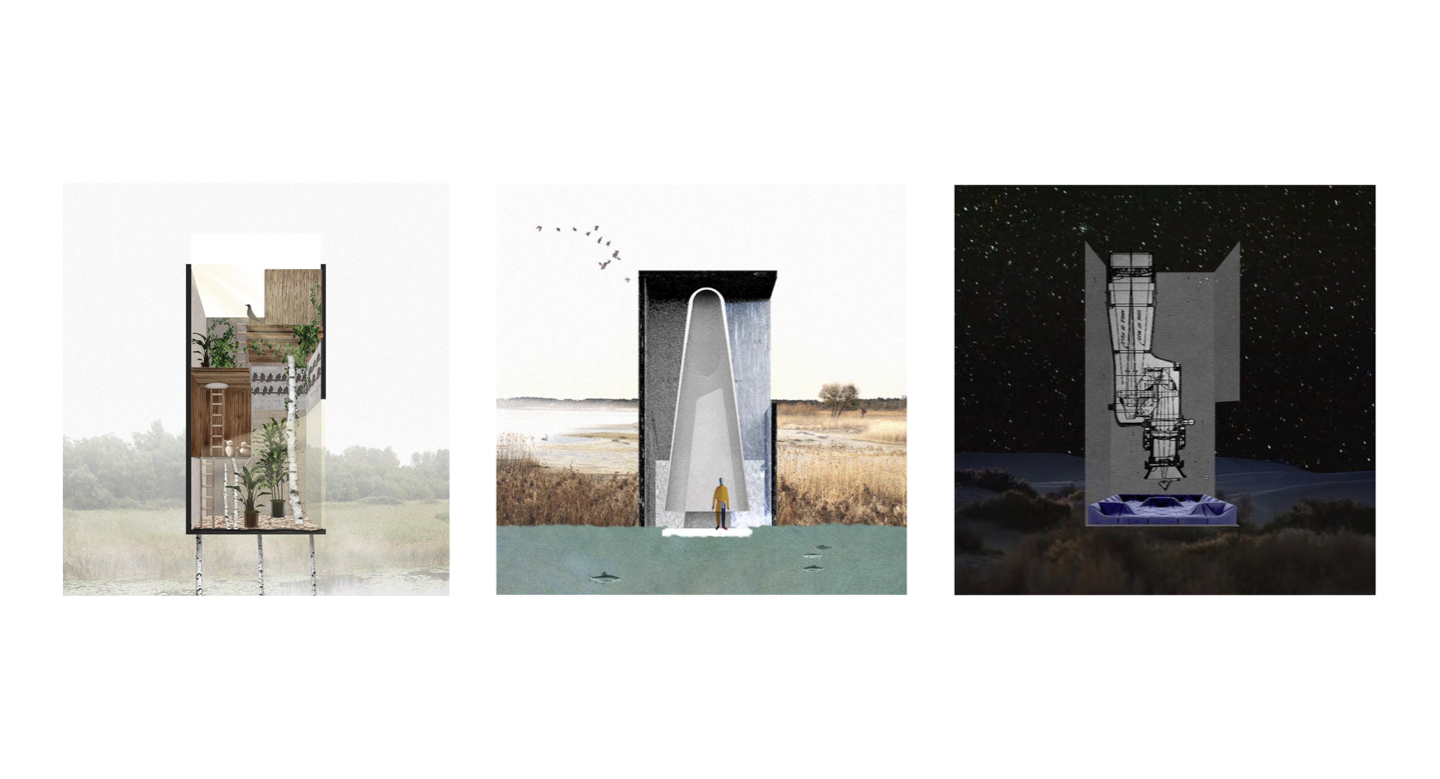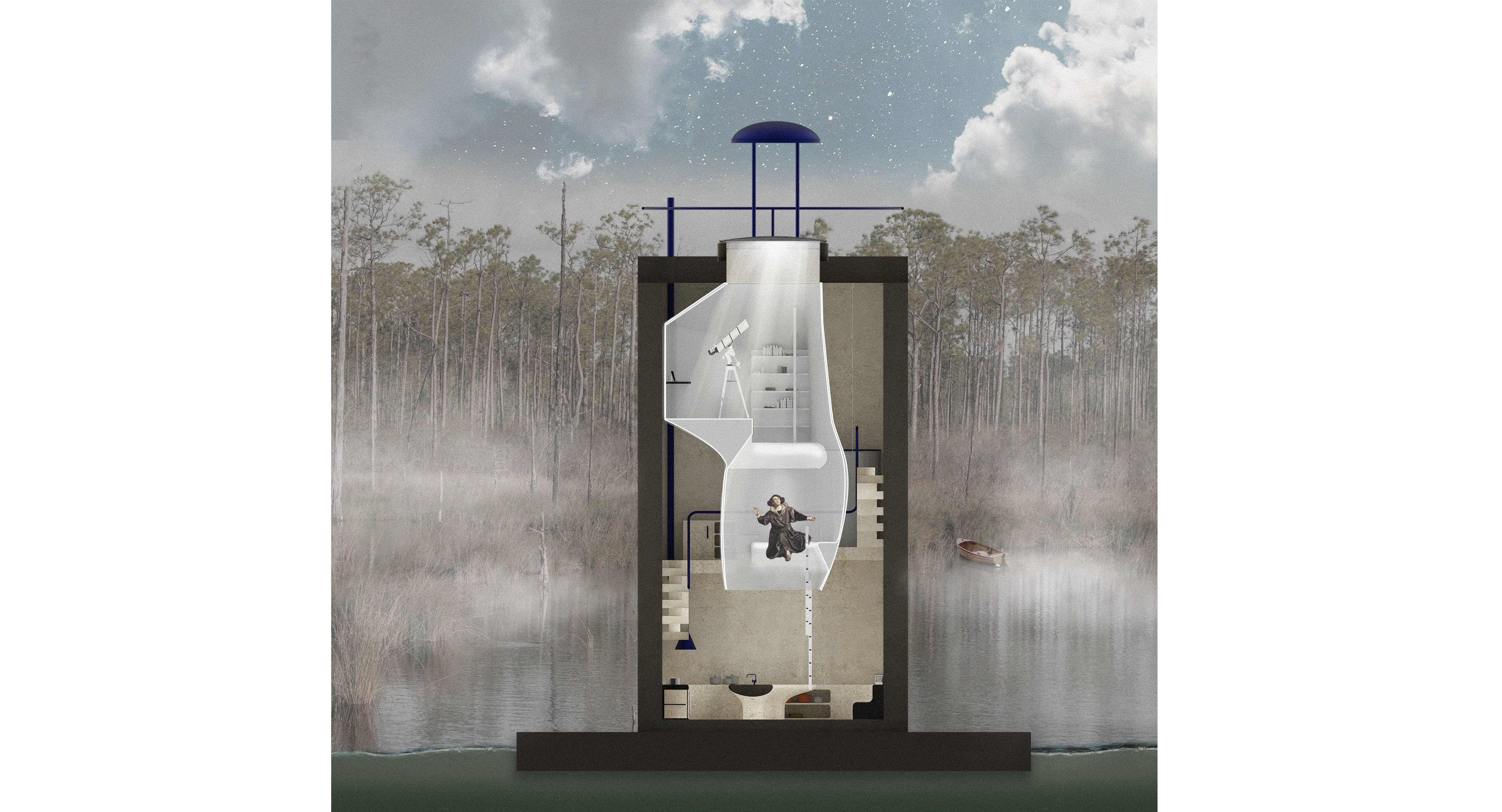 U prizmi dimenzija 5x5x10 m nastanila se kukuljica. Kukuljica odvaja od okoline, služi kao sklonište i mjesto bivanja, mjesto transformacije. U kukuljici pojedinac - astronom obavlja sve radnje koje ga čine astronomom. Izvan kukuljice, u nastalom negativu prizme, smješteni su služeći prostori. To su utilitarne platforme neophodne za radnje koje astronoma čine čovjekom. Izražena je razdioba prostora - prostor u skladu s čovjekovim interesima i profesijom te prostor koji zadovoljava osnovne potrebe čovjeka kao ljudskog bića.