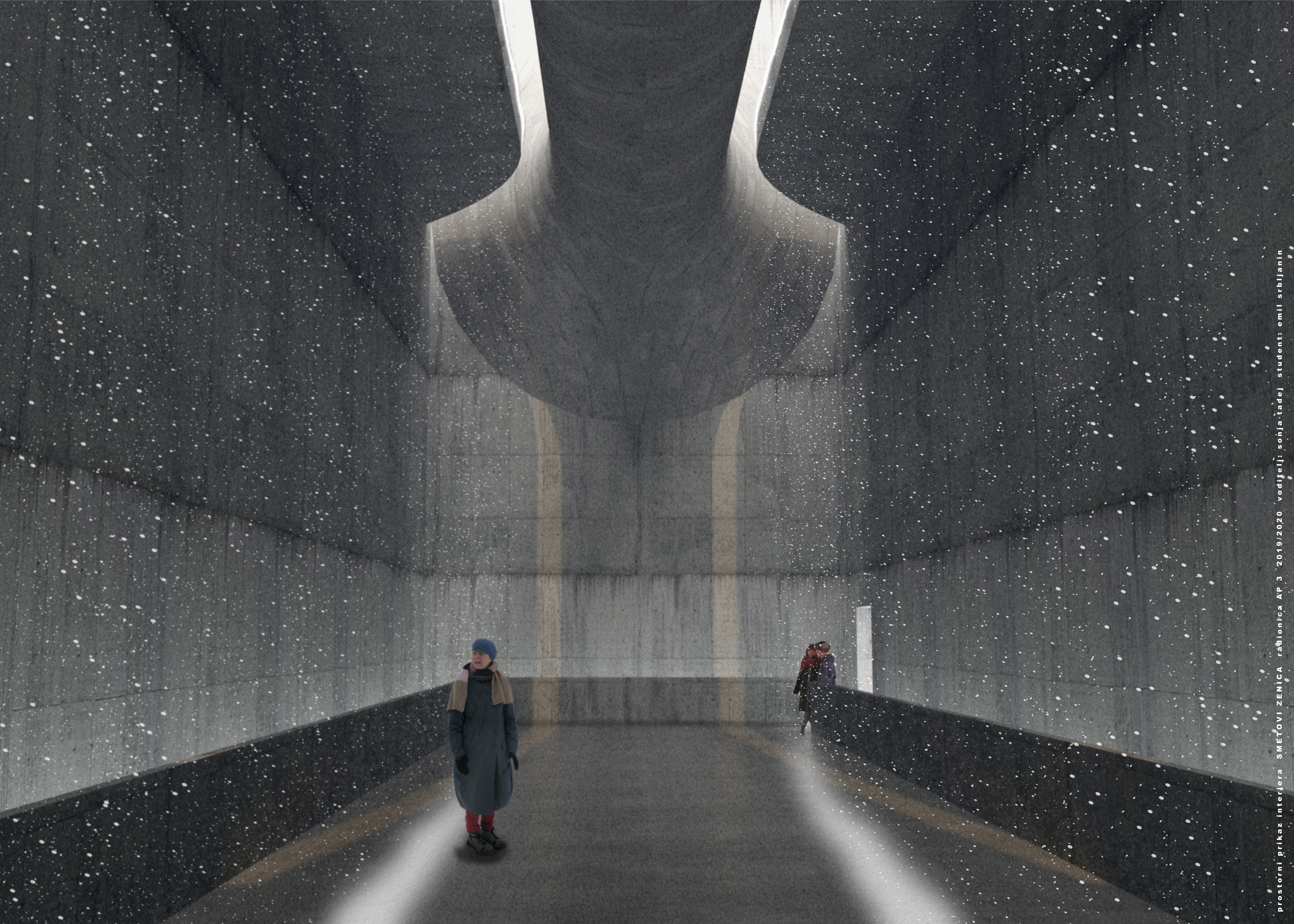 Dominantni krajolik ostavlja arhitekturu izloženu grubim prirodnim uvjetima. Brojne srednjovjekovne tvrđave i fortifikacije, točkasto razasute krajobrazom, sastavni su činioci prostora. Smješten na uzvisini u zaleđu Zenice, grada obilježenog teškom metalurškom industrijom, nalazi se meteorološki laboratorij. Industrijski karakter grada i grubi prirodni uvjeti, nalažu arhitekturu koja štiti, ali i utilizira samu lokaciju i njene datosti. U maniri industrijskog grada koji živi svoje resurse, vjetrovi postaju sirovina. Monolitni volumen vjetroturbine suprotstavlja se netaknutom krajoliku, materijalizacija nadmetanja prirode i čovjeka. Zujanje turbina i vibracije prolaska vjetra činitelji su tog „industrijskog hrama“. Laboratorij snažnom zatvorenom formom štiti unutrašnjost od nepovoljnih uvjeta. Nizovi izdignutih soba stacionara povezani su dnevnim boravcima, reinterpretacijom doksata. Orijentacijom zidova te igrom punina i praznina kadrirane su vizure, a dijelovi kuće ostaju izloženi krajoliku - pojačivači prirode, mjesta spoznaje.