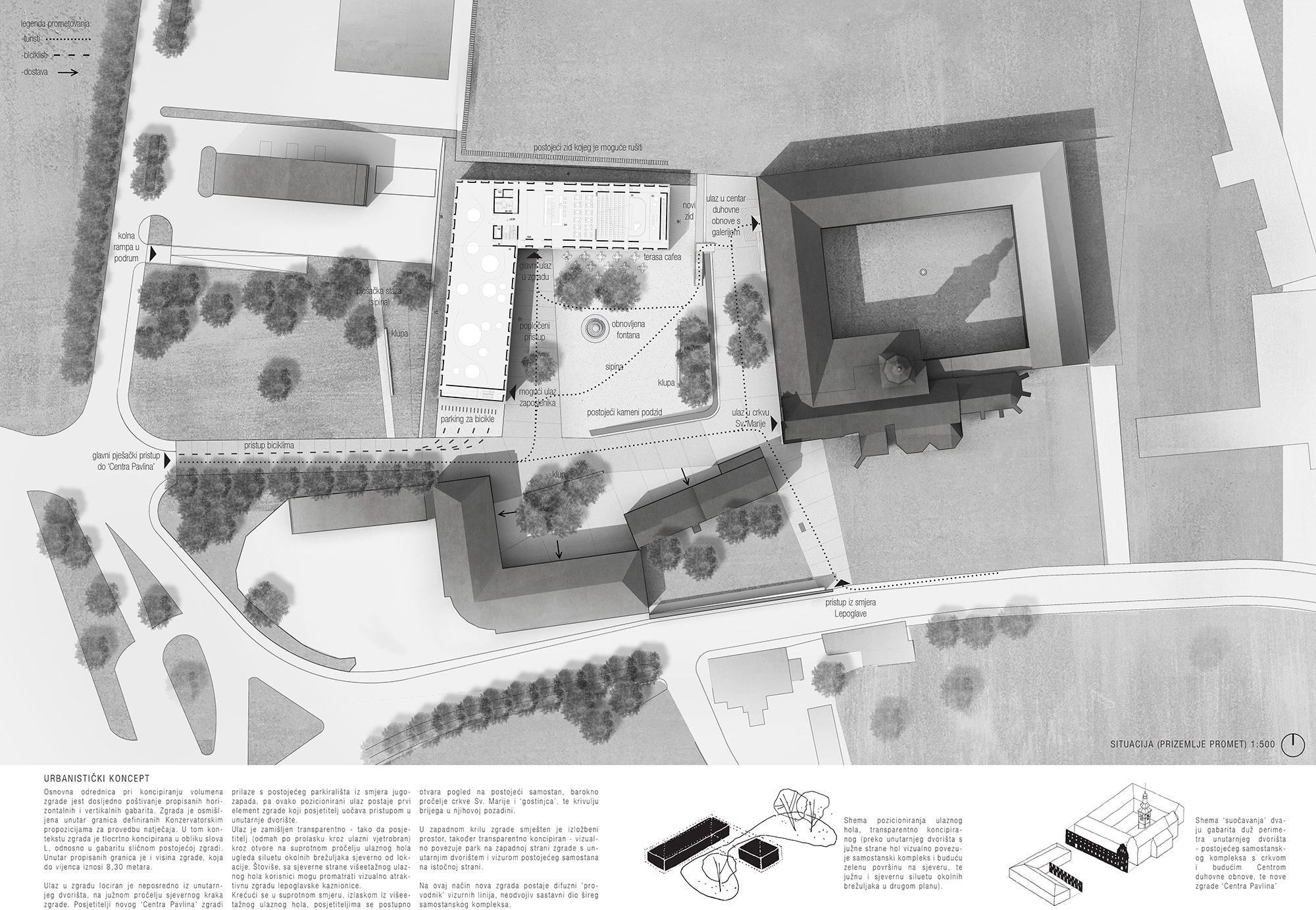 - nova zgrada centra za posjetitelje neodvojiv je dio uže strukture nekadašnjeg samostana, kao i šireg urbanog konteksta te harmonično nastavlja ambijentalnost postojećeg samostana,