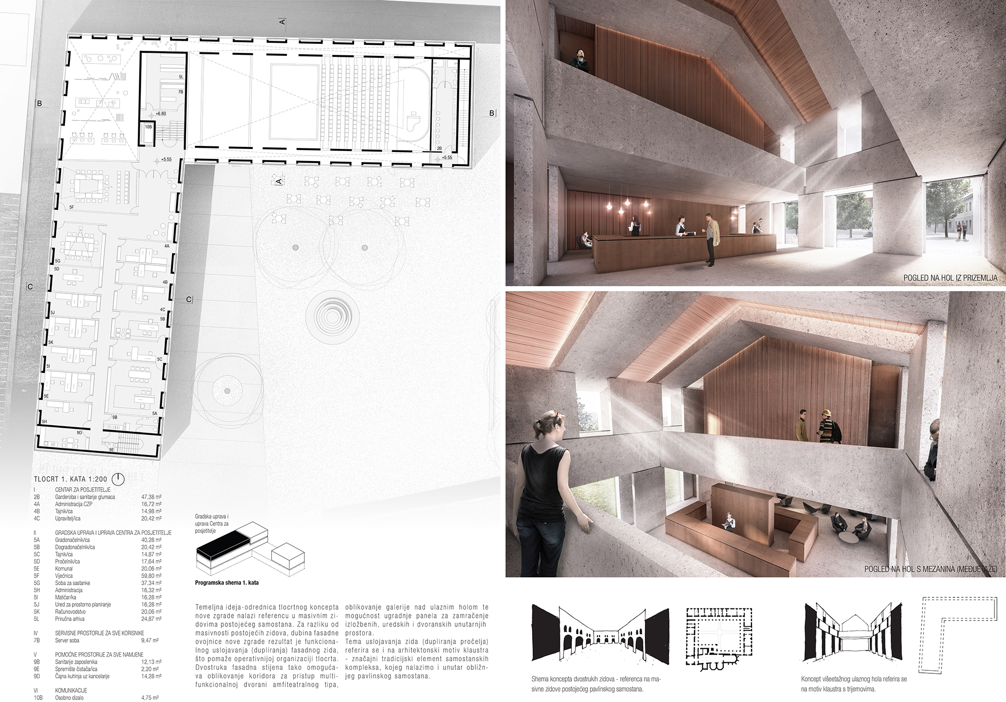 Arhitektonski ured: Ured ovlaštene arhitektice Lovorka PrpićStatus: natječajni radNamjena: javna ustanovaProjektirano: 2015