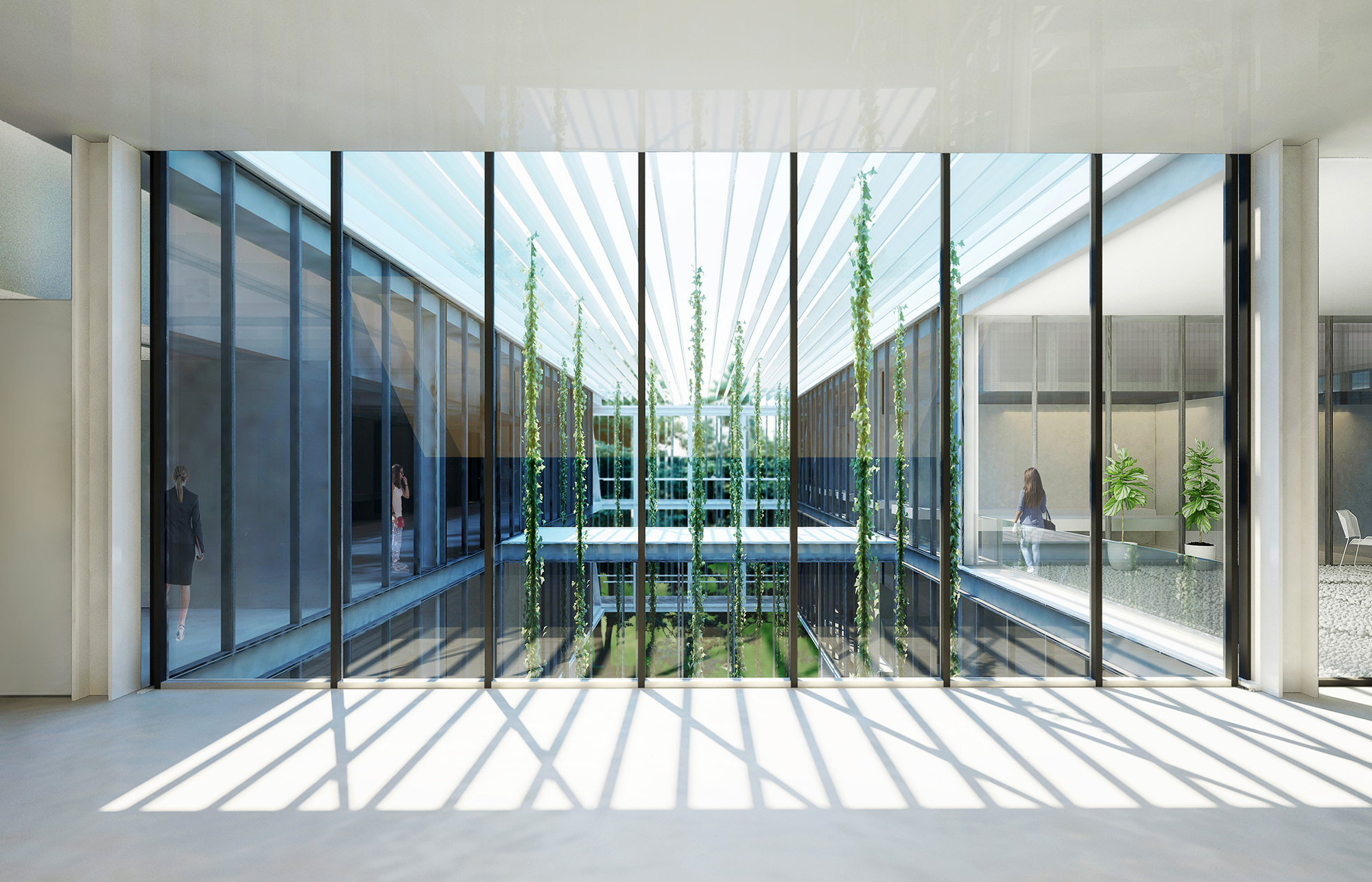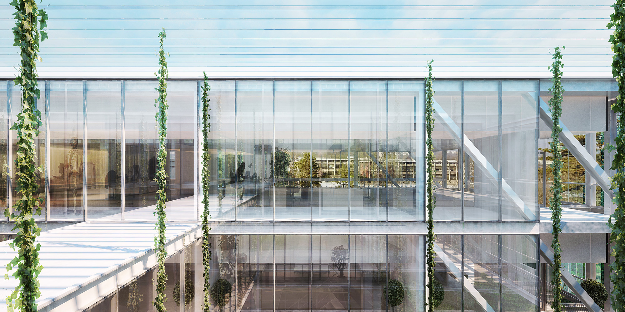 Bitna kvaliteta postojeće lokacije otkriva se izuzetnim vizurama iz centralnog dijela krajobrazno-urbanističkog kompleksa, osobito na valoriziranu šumsku površinu istočno. Stoga su prostori zgrade namijenjeni za povremeni boravak zaposlenika orijentirani na istok i ostakljeni velikim staklenim površinama te omogućuju i manji odmor – čajne kuhinje i otvorene terase.