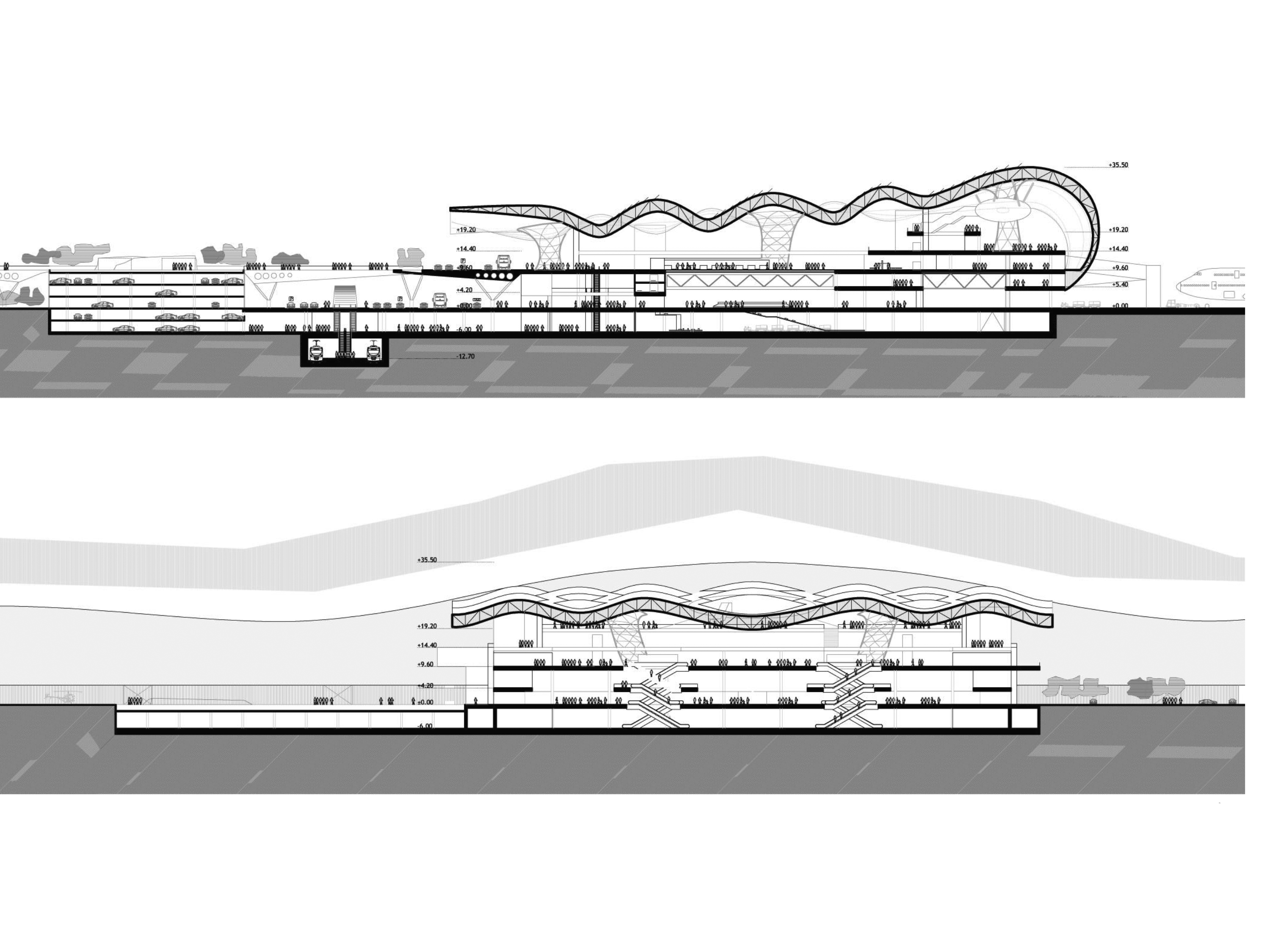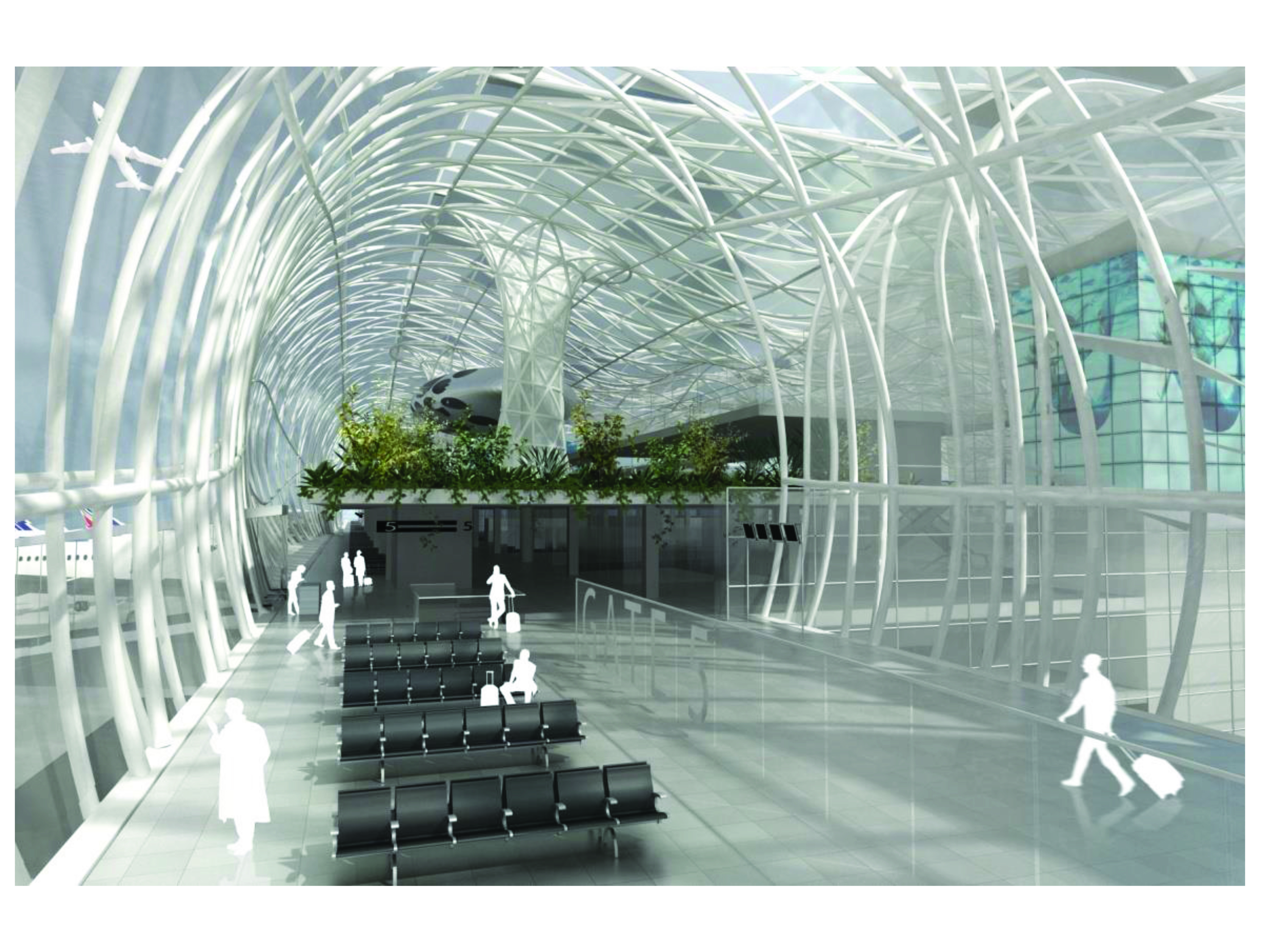 Glavna odlika arhitektonskog projekta jest urbanost koja se manifestira kroz višedimenzionalne poveznice, okomite i vodoravne fizičke veze između komplementarnih objekata zračne luke i njezine neposredne okoline. Bogatstvo i raznovrsnost projekta izražava interaktivnu vezu između postojećeg i traženog – prirodnog i umjetnog – dinamičnu formalnu harmoniju volumena i površina kao jedan jasan i očit rezultat arhitektonskog procesa.