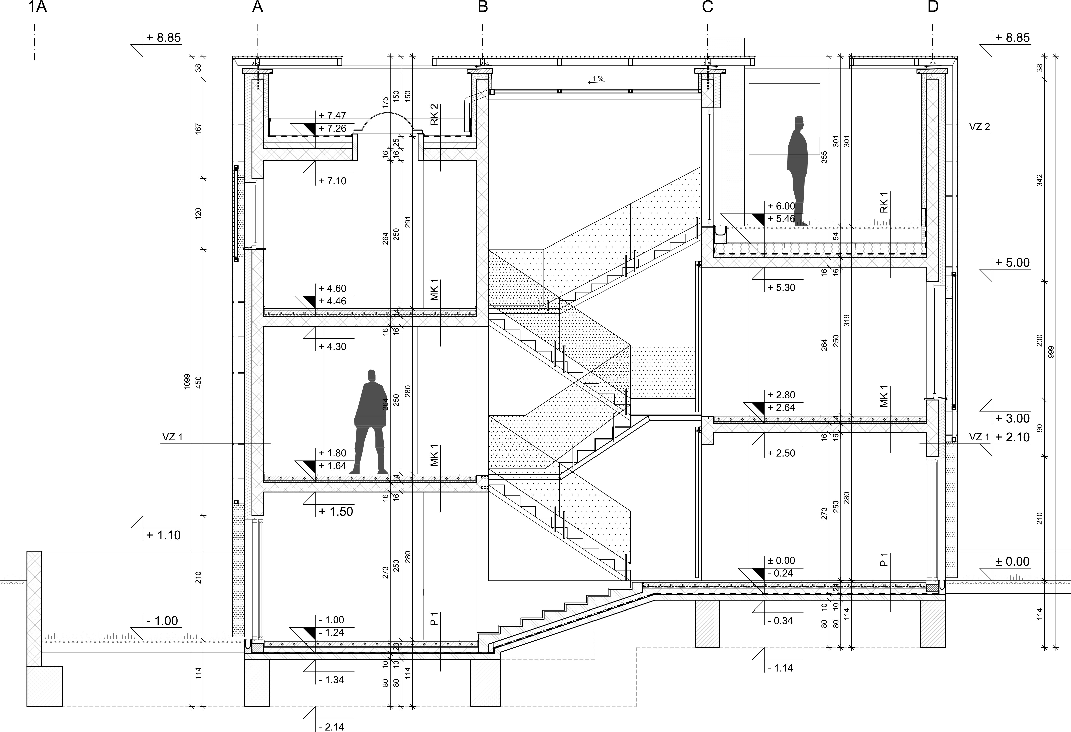 projekta obiteljske kuće. Idejno rješenje upotpunjuje se kroz slijed tehničkih aspekata u sklopu dionice arhitektonskih konstrukcija, a to su nosiva struktura kuće, uporaba materijala, razrada specifičnih detalja, rješenje instalacija itd. Konačni rezultati kolegija provjeravaju se kroz završne prezentacije na razini svih dionica. Svi radovi prikazuju se kroz različite medije: grafičke priloge, završne modele/makete te projekciju u vidu obrane i diskusije s mentorima i gostima kritičarima. Odabrani radovi dodatno se predstavljaju na javnoj izložbi, a prof. emer. dr. sc. Nikola Filipović tradicionalno dodjeljuje nagradu za najuspješniji projekt.