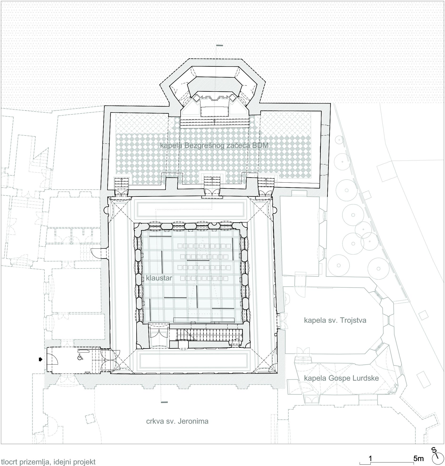 Idejnim projektom predviđa se obnova i djelomična rekonstrukcija samostana koji pored vjerske dobiva i javnu namjenu, kao prostor u kojem će naručitelj, Grad Rijeka, povremeno organizirati manje kulturne programe (izložbe, predavanja, koncerte) koji odgovaraju sakralnom karakteru sklopa. Unutarnjim prostorima kao i klaustru samostana vraća se barokni karakter (stubište i otvori kata na izvornoj poziciji), dok se gotička kapela Bezgrešnog začeća obnavlja ponovnom uspostavom trobrodne koncepcije.