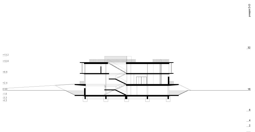 školski parter se podiže na 80x40 m veliku "lebdeću" platformu. Iz platforme izrasta