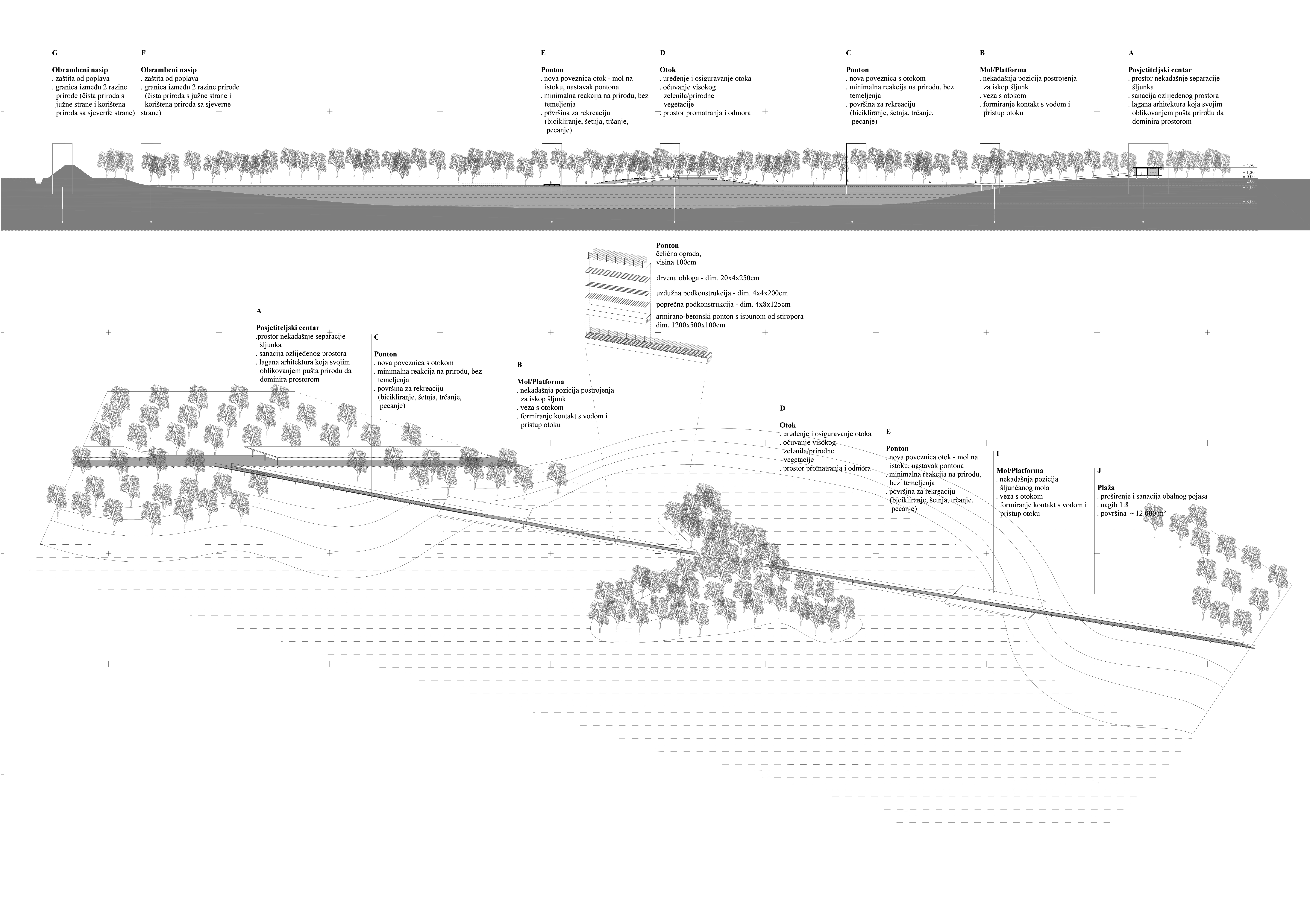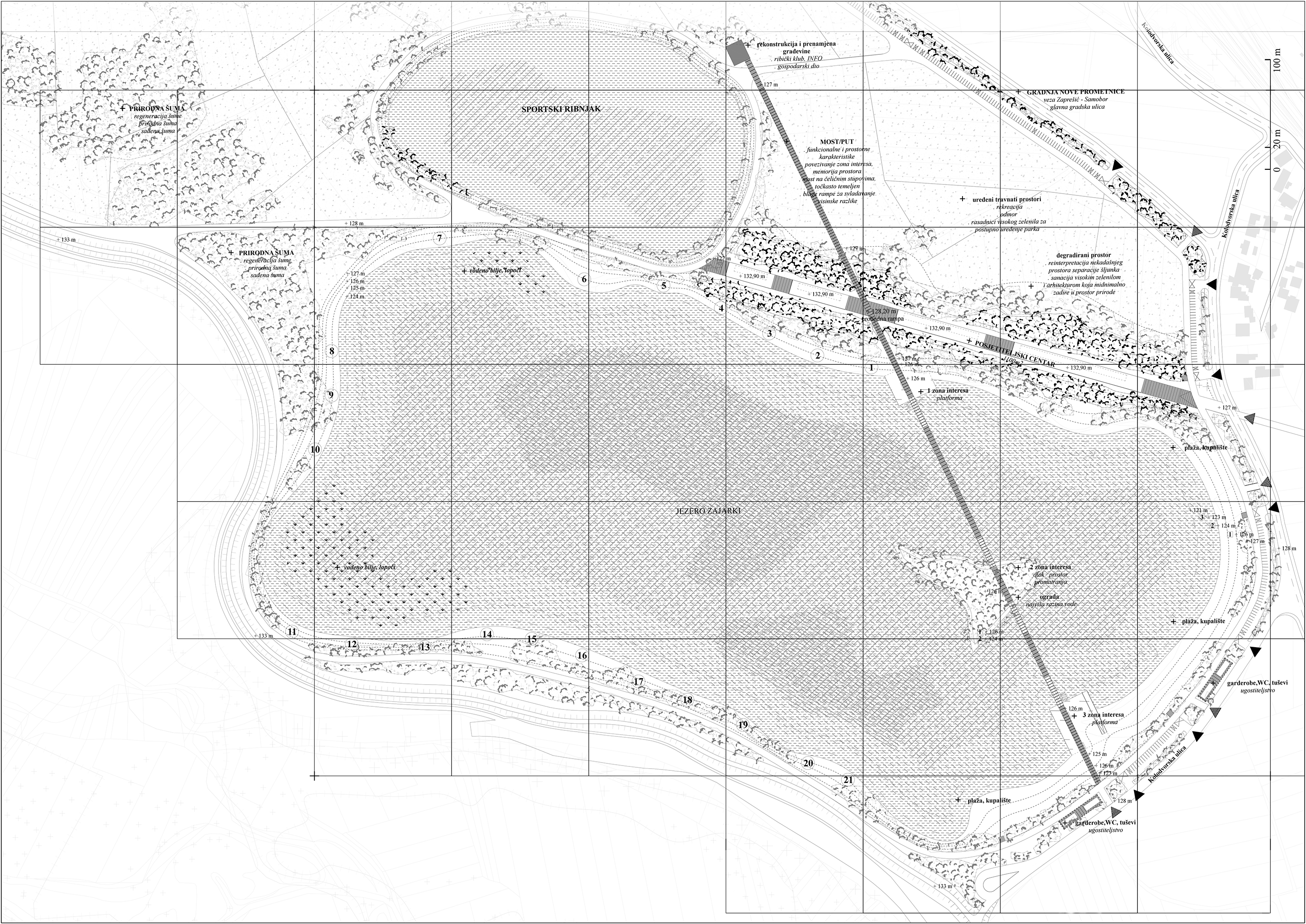 Koncept projekta temeljen je na trima razinama sagledavanja prostora. Prva je odnos jezera Zajarki i okolnih gradova. Druga i treća odnose se na uži obuhvat, gdje se određuje veza između jezera Zajarki i grada Zaprešića te konteksta jezera i njegove najuže okolice. Uspostavljanjem veza stvara se Park Zajarki koji omogućuje funkcioniranje sve tri razine. Linearna veza između gradskih jezera i njihovo međusobno povezivanje u jedinstveni sustav pješačko-biciklističkih putova postaje rješenje šireg obuhvata, a jezera postaju aktivatori prostora u kojem se nalaze. Uži obuhvat prepoznaje zeleni pojas koji obavija grad i time usmjerava njegov razvoj, umrežavajući sve sadržaje grada Zaprešića u cjelinu. Jezero Zajarki i njegova okolica kao najuži obuhvat formiraju park sa sportsko-rekreacijskim sadržajima, u sklopu kojeg nastaje posjetiteljski centar – kao veza s ornitološkim rezervatom i prirodnim okruženjem. Očuvanjem prirodnih karakteristika, bez velikog zadiranja u prostor, proizlazi arhitektura, kao i oblikovanje njezine okoline.
