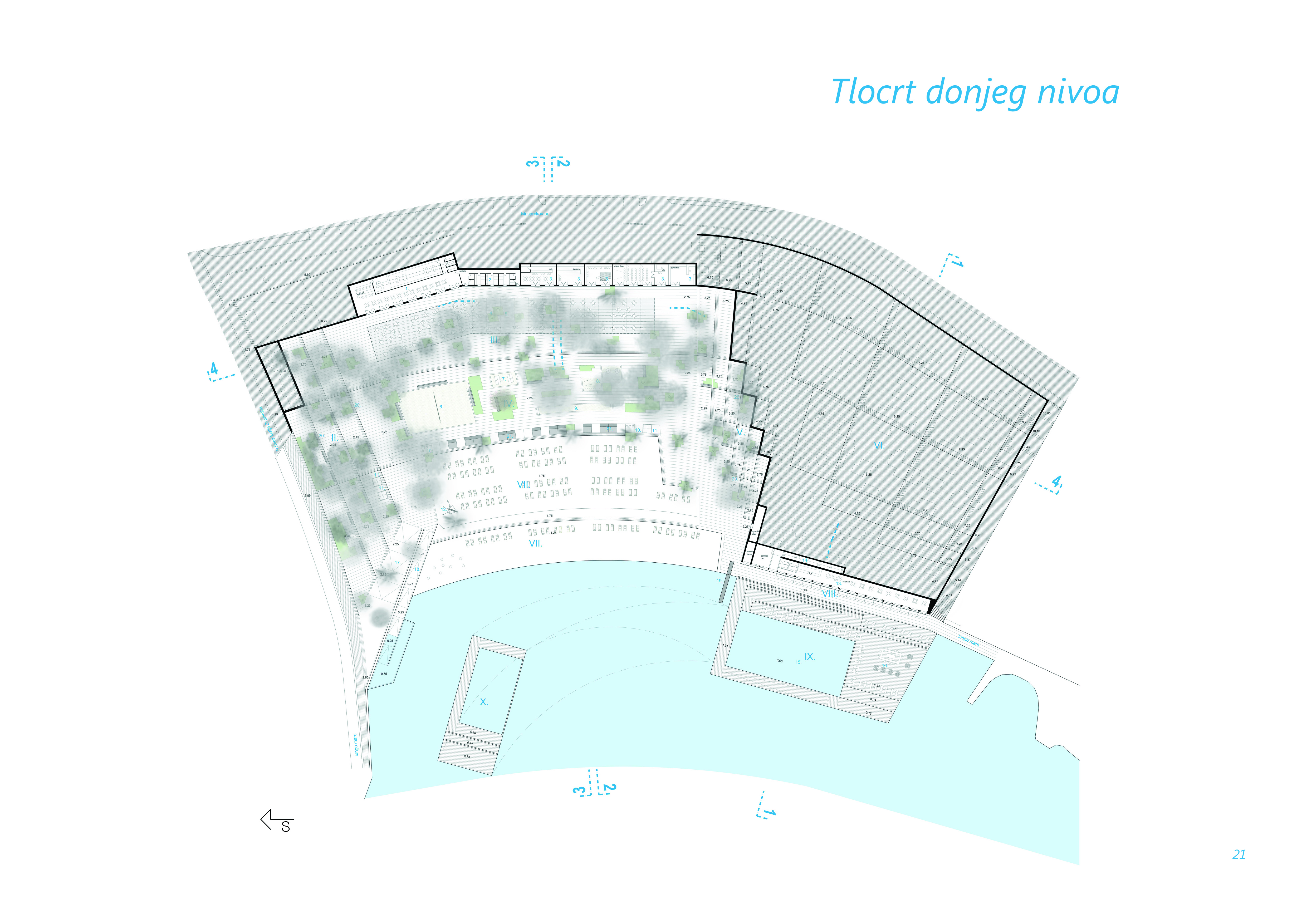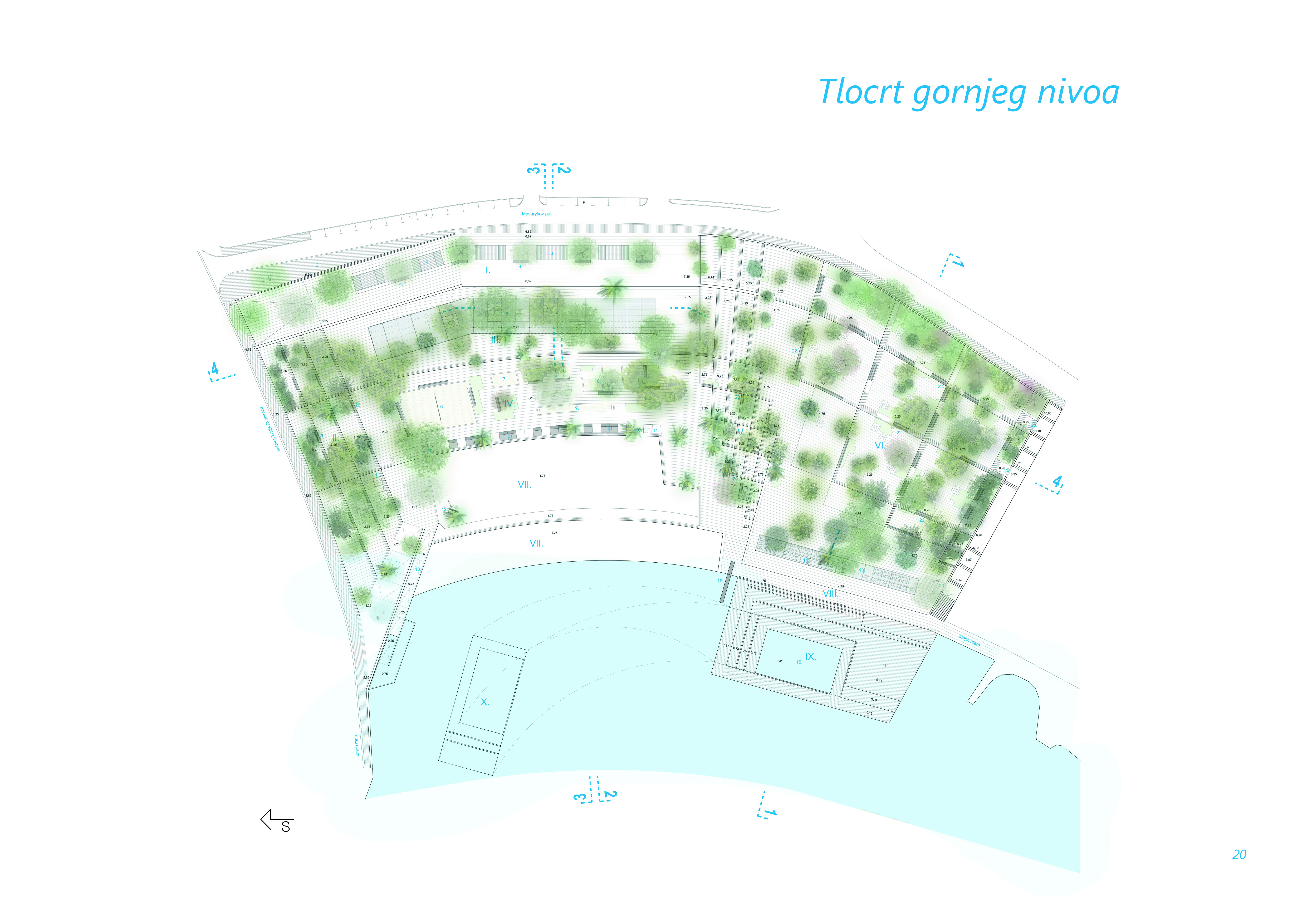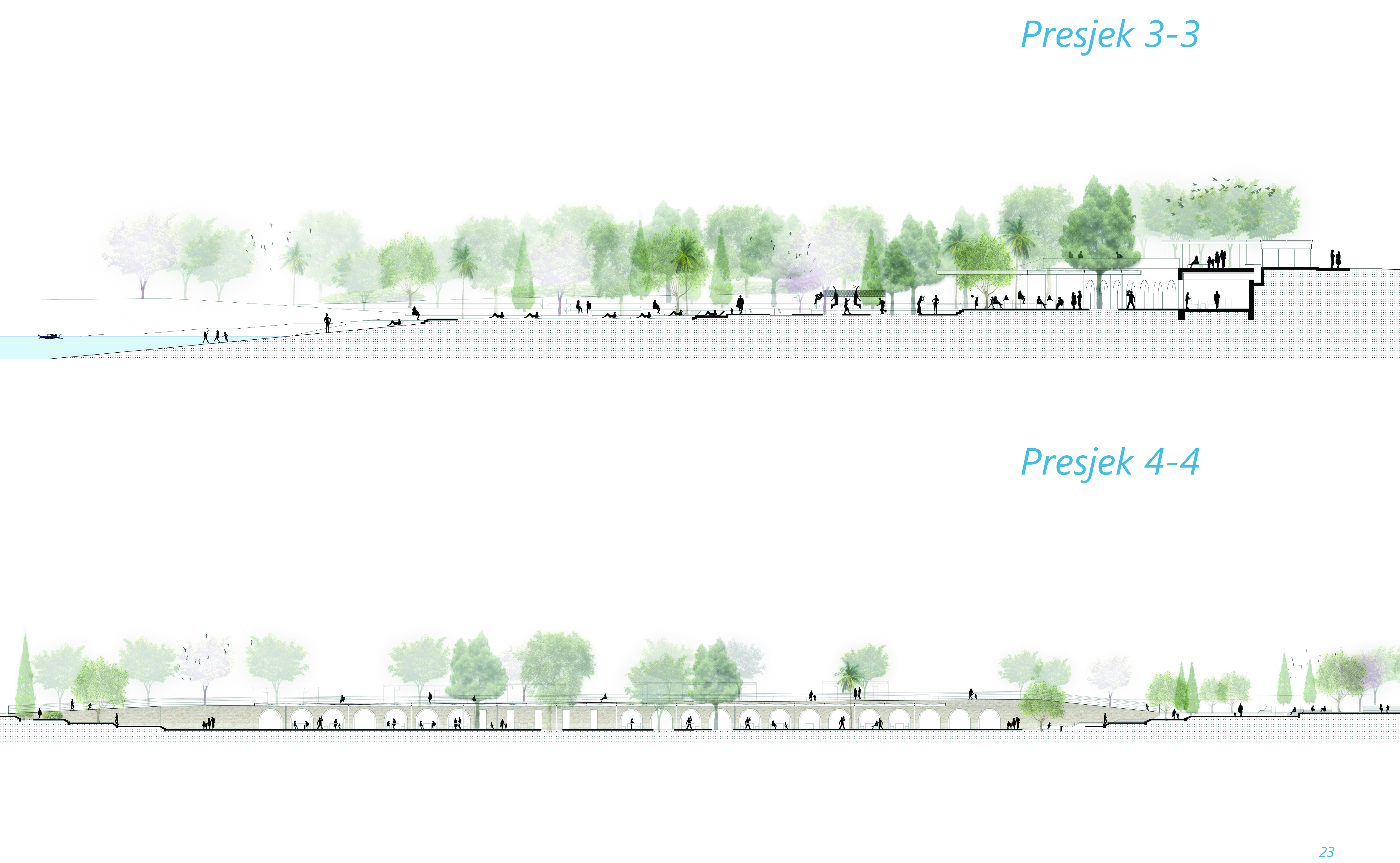 Istovremeno je prepoznata potreba za uspostavom različitih režima korištenja prostora, kako u kontrastu sezonskog i vansezonskog, tako i u smislu definiranja različitog karaktera formiranih prostornih cjelina. Kao prioritet postavljeno je očuvanje autohtone kvalitetne vegetacije, a izgradnja je svedena na minimum: prenamjenu i adaptaciju postojećih objekata (poluukopana spremišta na istočnom rubu parcele i objekt svlačionica i tuševa uz more). Predviđeno je rušenje neadekvatno pozicionirane i nekvalitetne postojeće građevine, restorana na plaži, a s ciljem proširenja plaže i bolje prostorne povezanosti cjeline.