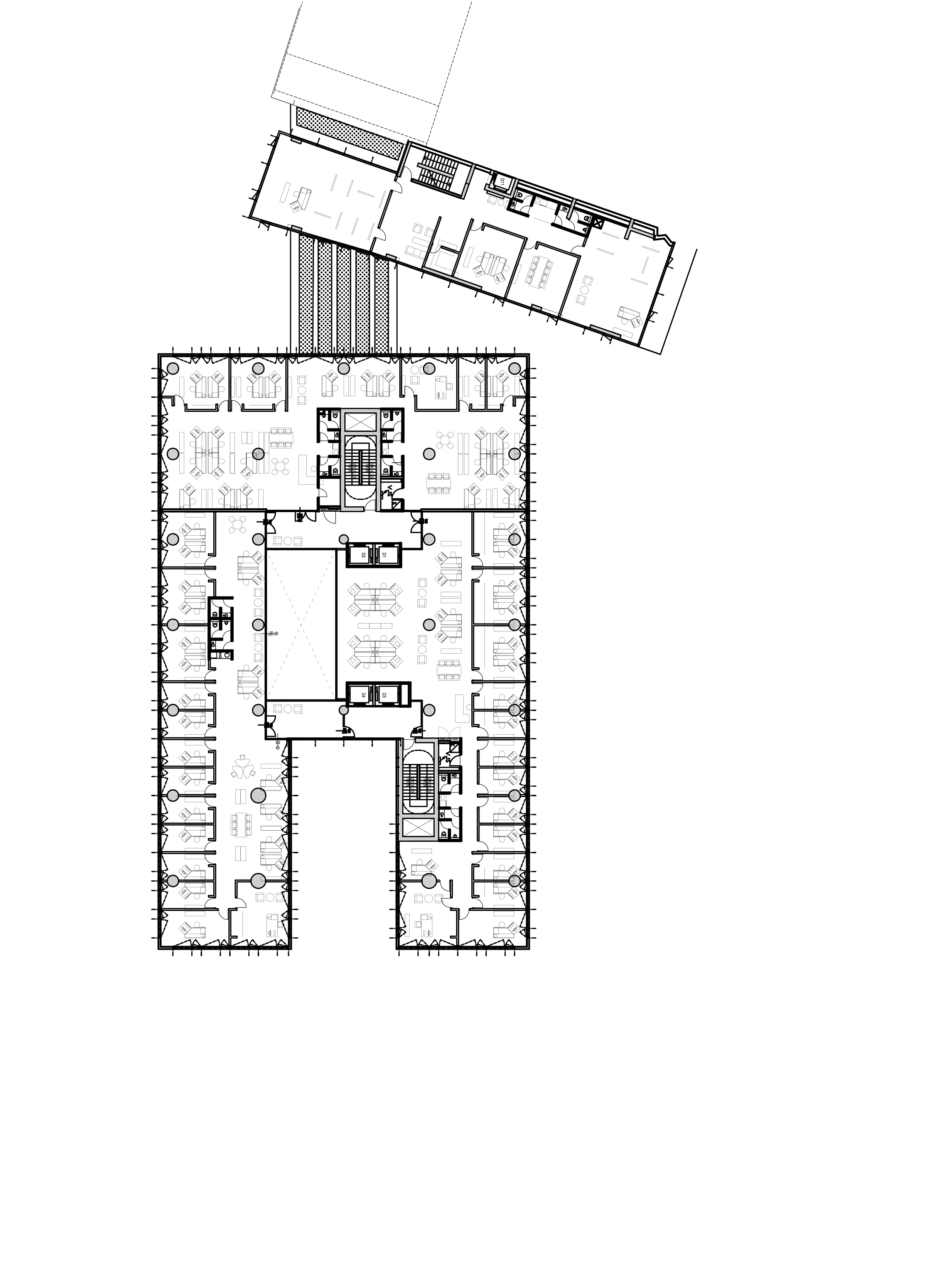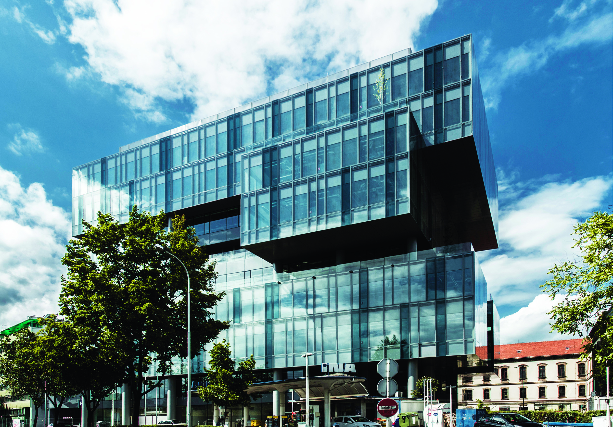 Prostoru rada dane su nove mogućnosti: komotni radni prostori zanimljivih prostornih sklopova i vizura, prozračnost, fluidnost, ležernost, blizina katnih terasa koje su pogodne za druženje, razgovore i rad na otvorenom u prirodnom i ozelenjenom, a ponegdje i gotovo vrtnom ambijentu. Sve to doprinosi osjećaju sklada i zadovoljstva tijekom boravka. Prostorna kompozicija slaganja po vertikali uzdužnih, poprečnih i atrijskih oblika osigurava dinamičnost unutrašnjeg prostora, a doprinosi i atraktivnosti objekta što smo dodatno nastojali naglasiti naizmjeničnim ‘izbacivanjem’ poprečno postavljenih volumena prema ulici i prema dvorištu.