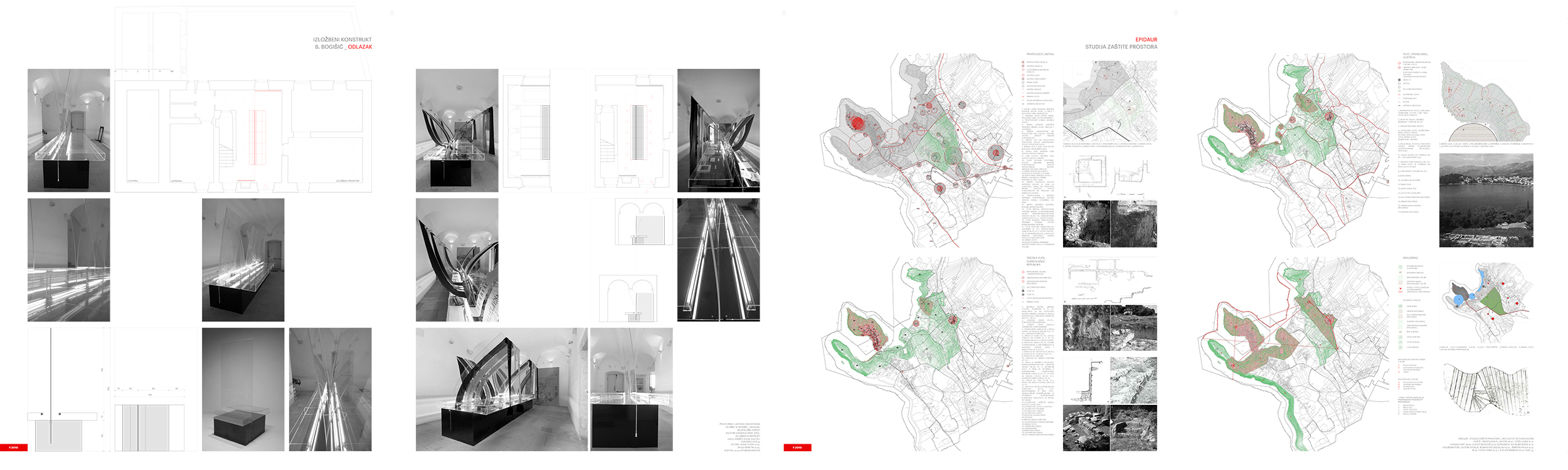U kontinuiranom kadru izložena je nacrtana, programirana i konstruirana arhitektura prostora i područja: niz arhitektonskih i urbanističkih projekata u rasponu mjerila od sobe do teritorija, od vitrajne slike preko gradskog trga do studije zaštite prostora.