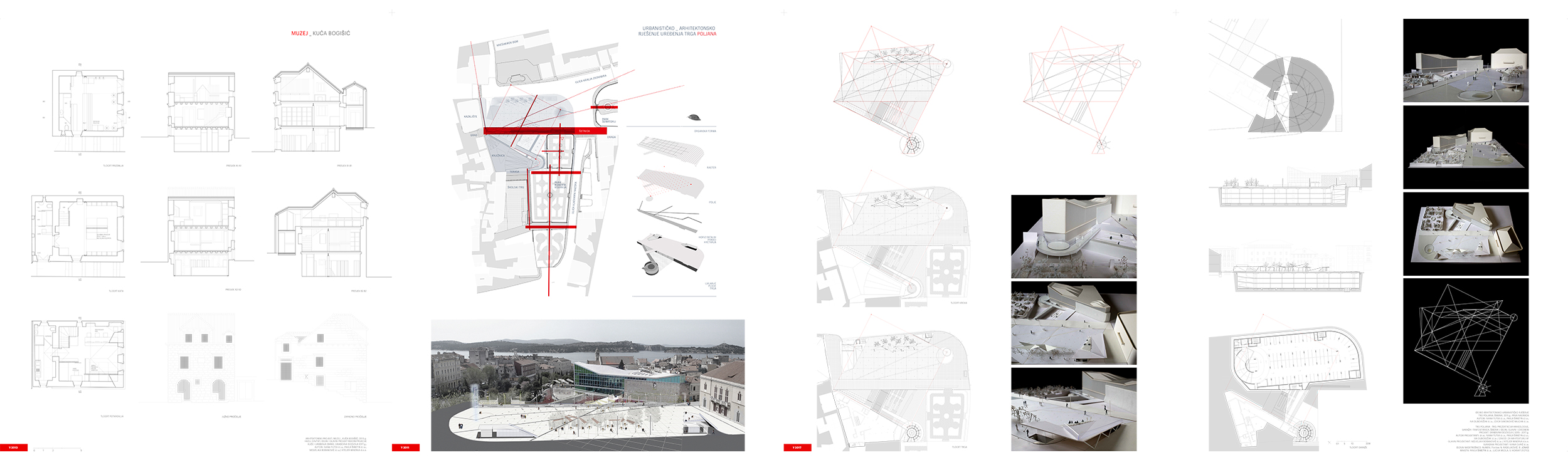 Izloženi crteži svojom gustom linearnošću prenose autorski pristup koji arhitektonsko urbanističke projekte i studije tumači kao složene mreže podataka i odnosa. Jednoliko disciplinirane i tehnički korektne ove crteže treba promatrati kao zabilješke konstrukcije odnosa ili upute, kao dijagrame ili notacijske zapise koji svojim ravnomjernim intenzitetom ukazuju na kontinuitet projektantske metode.