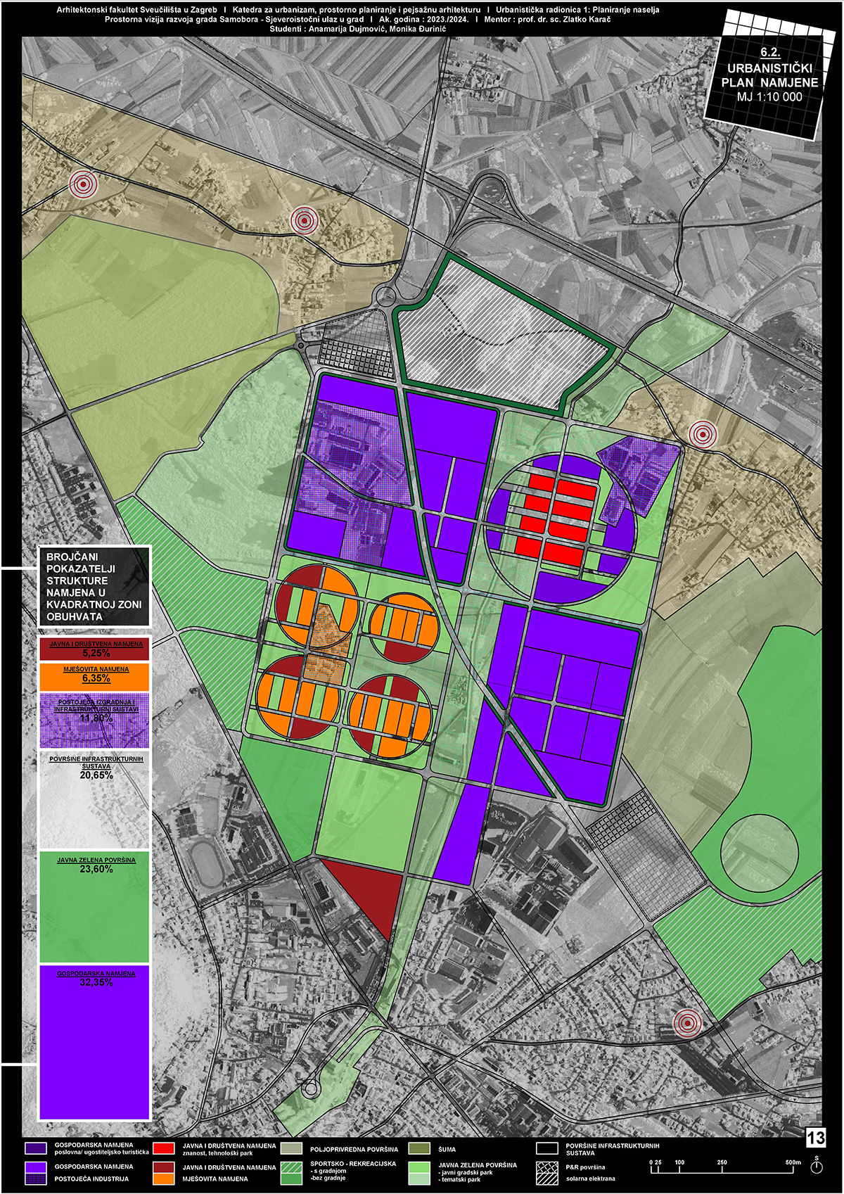 Zelena dominanta i amorfno zelenilo ispunjeno parkovnim i sportsko rekreacijskim površinama i sadržajima doprinosi kvalitetnom razvoju grada i dopunjava osnovnu nužnost za trenutne stanovnike Grada Samobora. Novoplanirani grid sadržaja unutar grada unosi snažan otisak, novi smjer razvoja grada, okrećući se industrijskim inovacijama i tehnologiji. Već postojeća industrija, prisustvo velikog broja obrta u sektoru građevinarstva, strojarstva i elektrotehnike pruža dobru