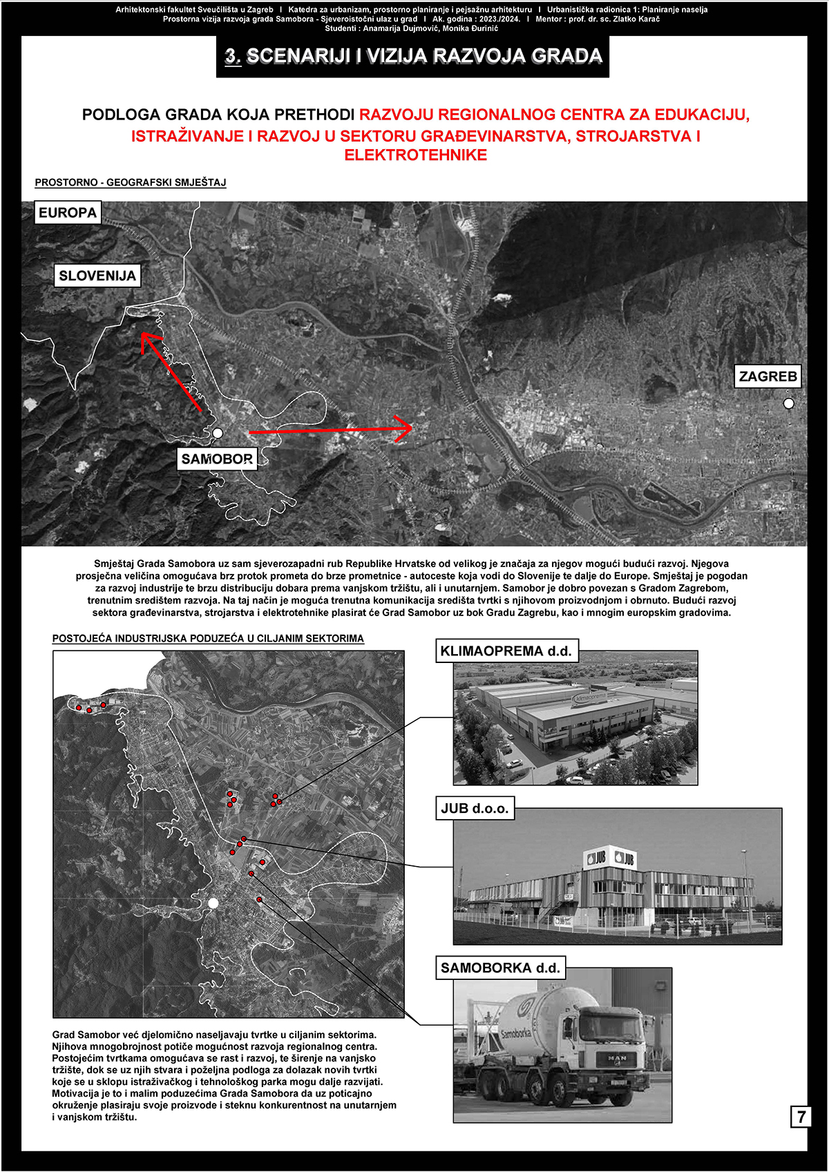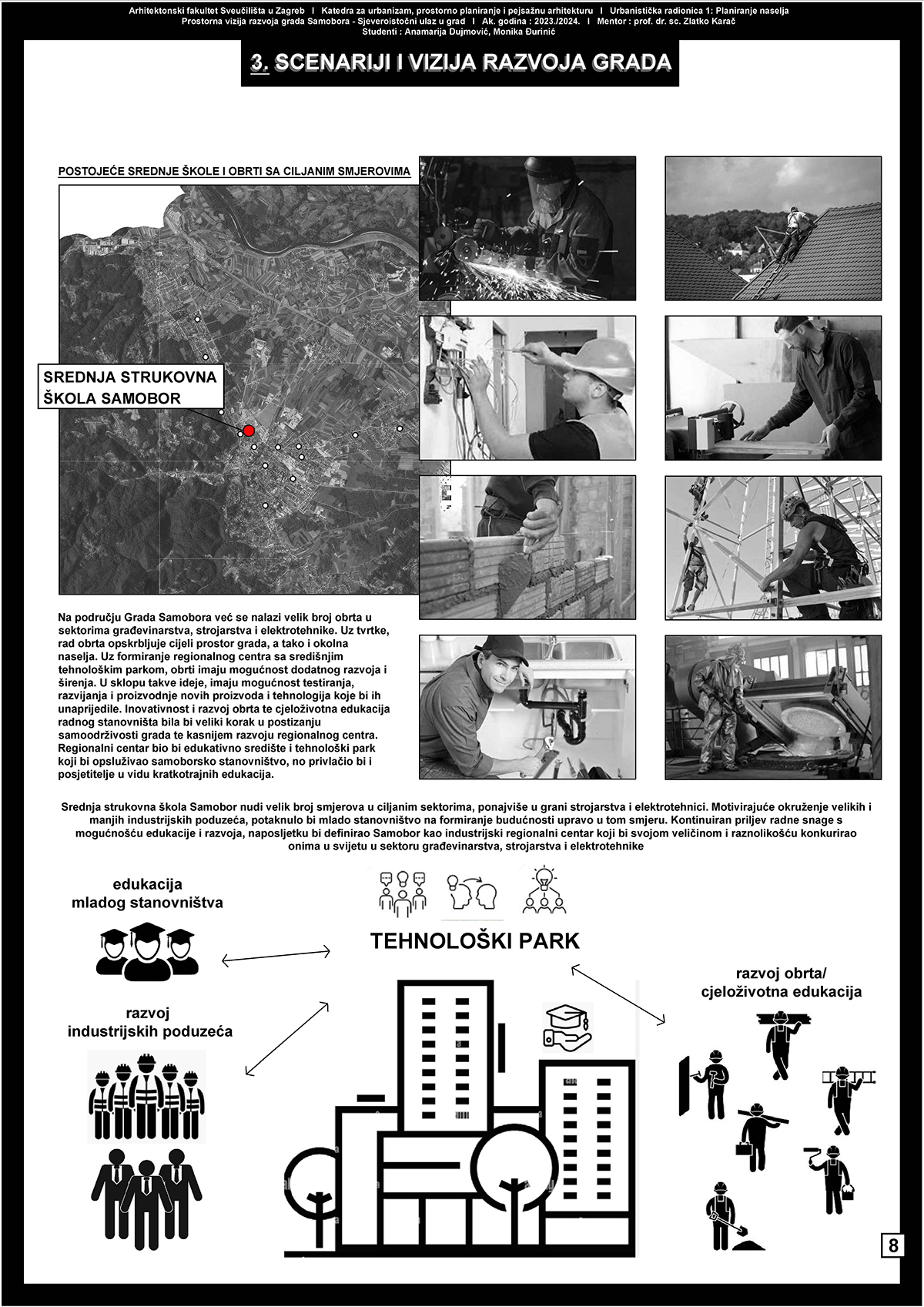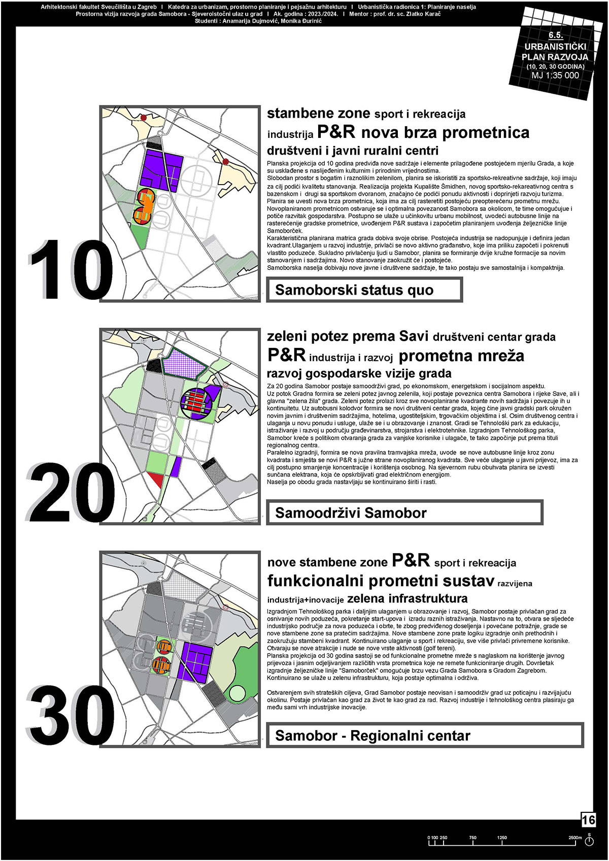 podlogu za njezin daljnji razvoj. Njemu pridonosi i mnoštvo obrazovanog mladog stanovništva koje nakon školovanja u Gradu Samoboru, direktno pronalazi mjesto za budući razvoj karijere. Dobra industrijska podloga potencirala je planiranje novih industrijskih zona, koje nadopunjuju one zatečene, kao i planiranje novog tehnološkog parka za istraživanje, inovacije i razvoj proizvoda i tehnologija. Novi sadržaji privlače novo stanovništvo te se grad kontrolirano širi. Postupnom izgradnjom zona, gradi se I potrebna planska infrastruktura, razvija se javni prijevoz, s naglaskom na izgradnju I provođenje tramvajskih linija te revitalizaciju autobusnog prometa. Javni prijevoz