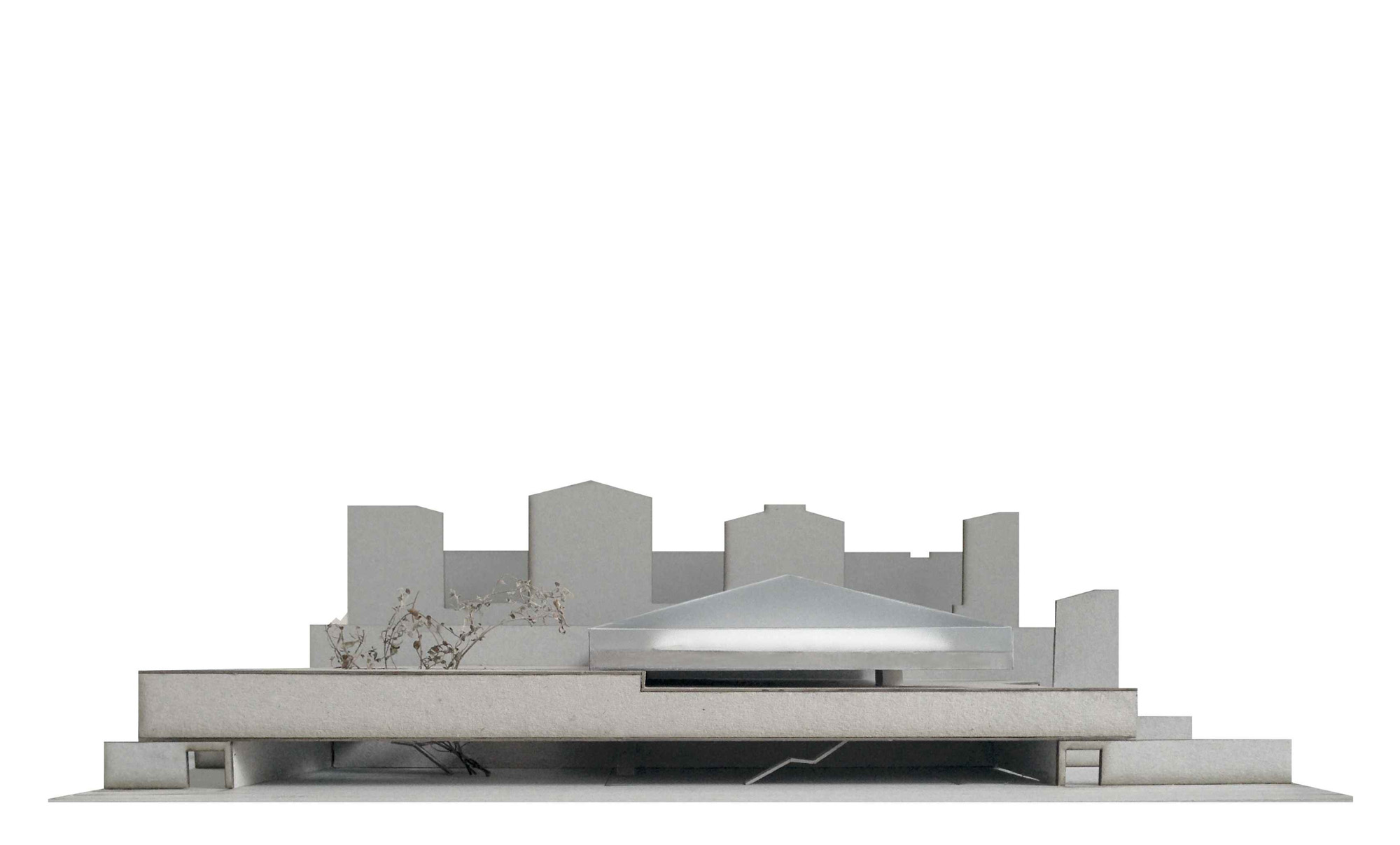 Volumen na etaži ispod sadrži sve ostale progamske prostore koje vizualno doživljamo prolaskom kroz isti, odnosno kroz atrij ispunjen zelenilom i orijentiran na dvoranu, teretanu, ugostiteljski prostor te unutrašnju ulicu, komunikacije. Volumen kata je prelomljen u presjeku tvoreći tako veću visinu određenih sportskih i pratećih prostora i definirajući korišenje krovne terase, vrta, perivoja. Tehnički prostori su smješteni na koti ceste, nestaju u pozadini, u masi stijene. Kretanjem kroz kompleks kontinuirano se izmjenjuju atmosfere i doživljaji prostora.