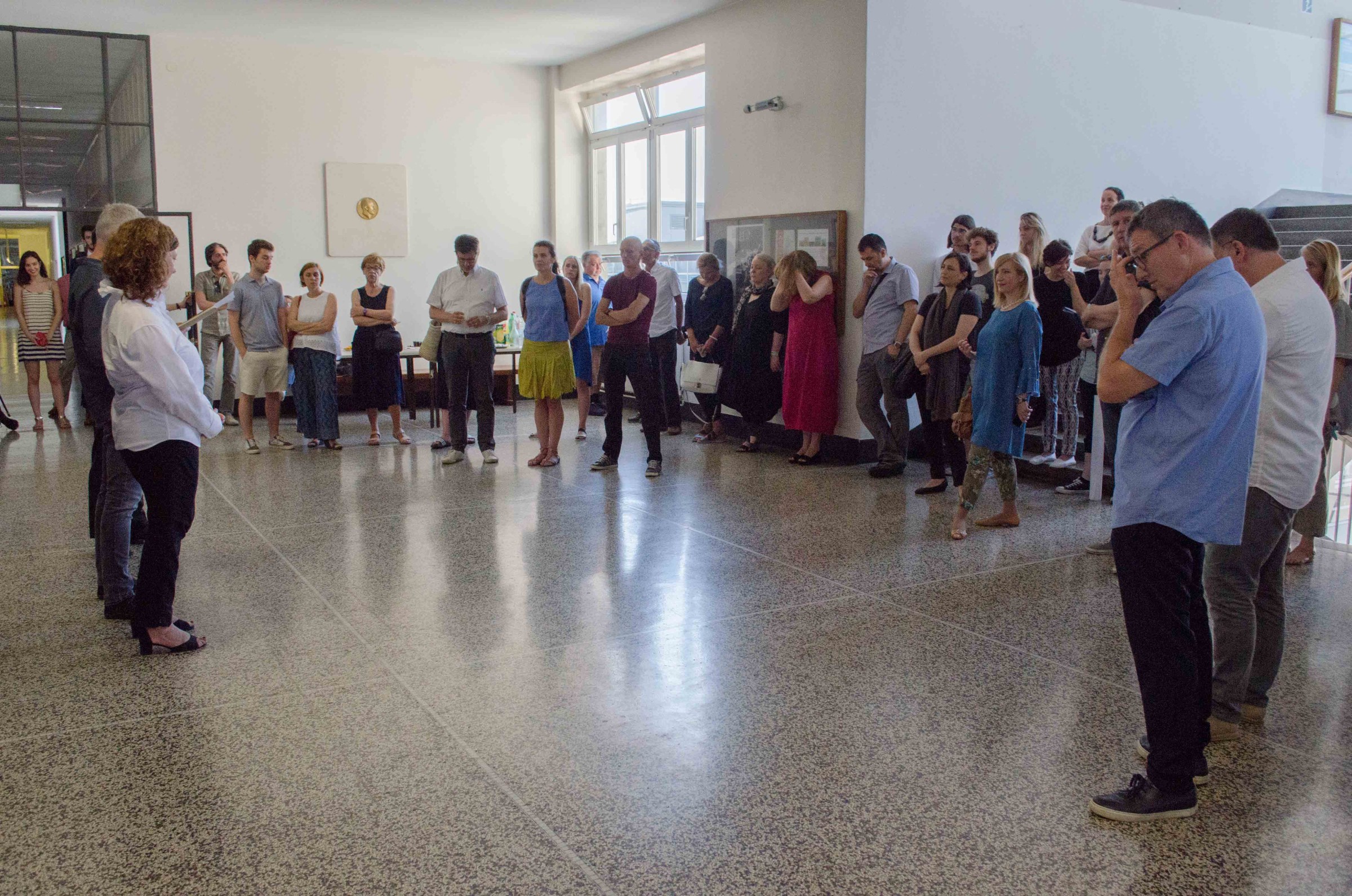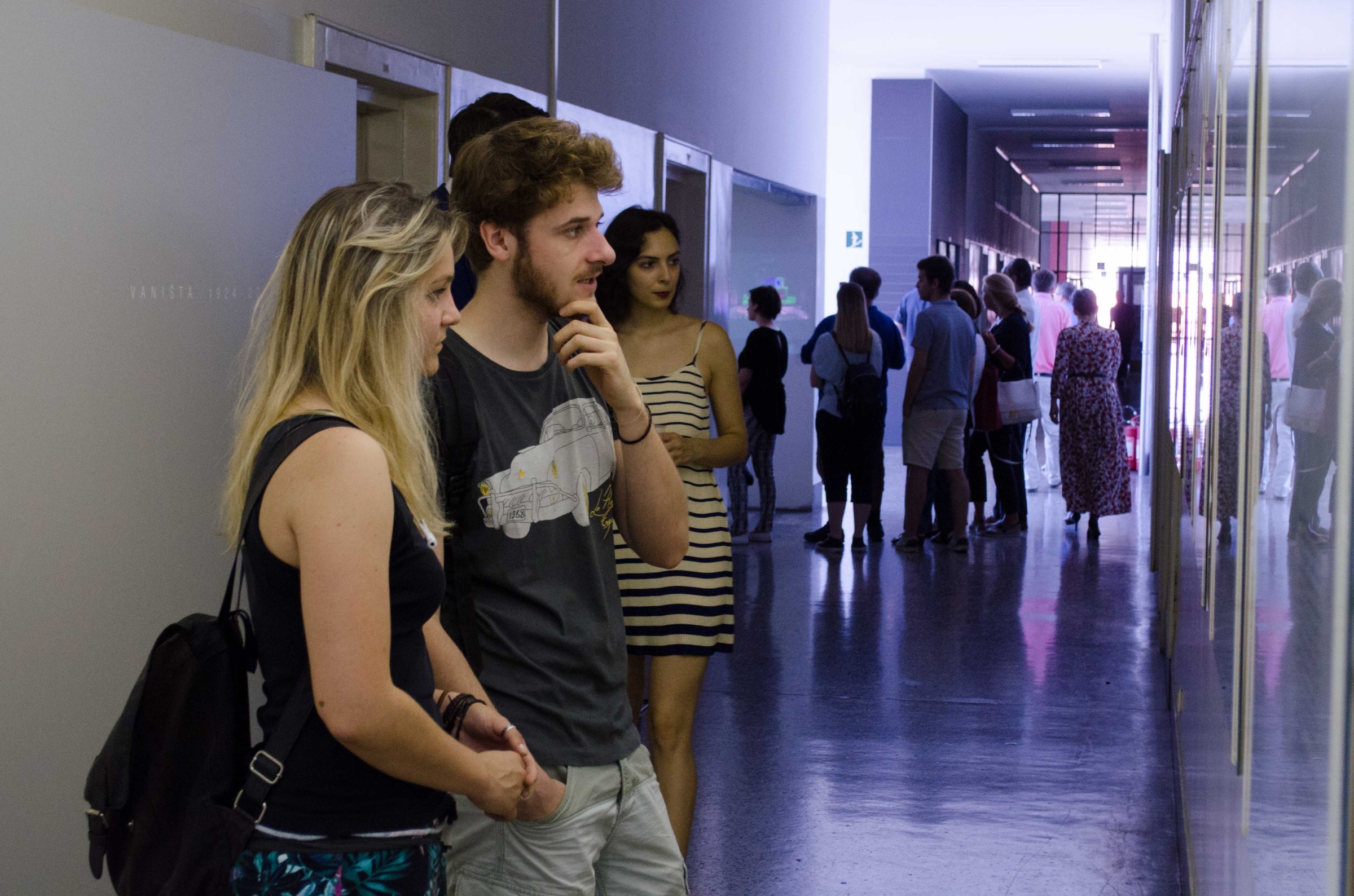 Koristeći različite prostore AF-a, od kojih neki nisu primarno namijenjeni izlaganju, disperzirani postav naglašava edukativni potencijal cjelokupnog prostora zgrade fakulteta. Kroz aktivnu interpolaciju u neočekivano i nepoznato, izložba se pokušava izmaknuti iz ograničenja klasičnog izložbenog formata i subvertira uobičajene izložbene postupke, a svojim postavom tematizira tenziju između dva oslovljena stvaralačka principa The Box i Out of the Box
