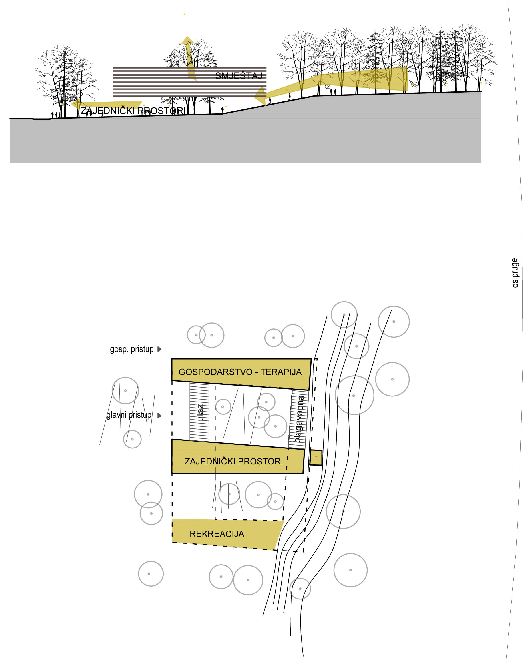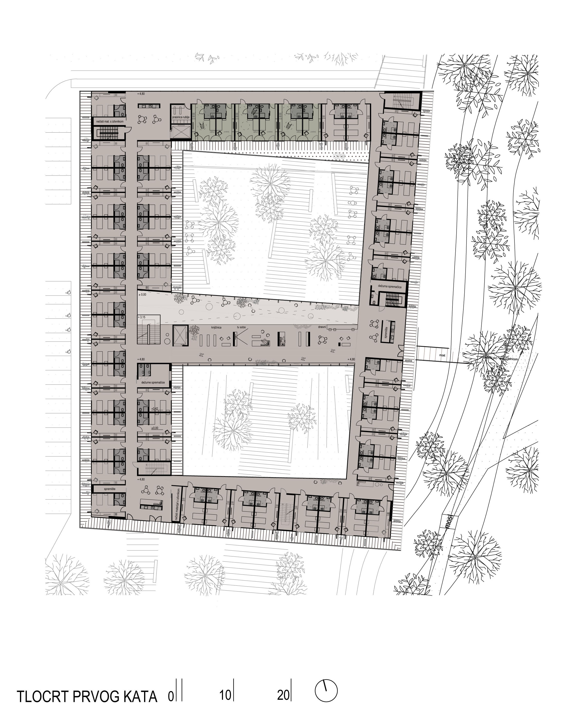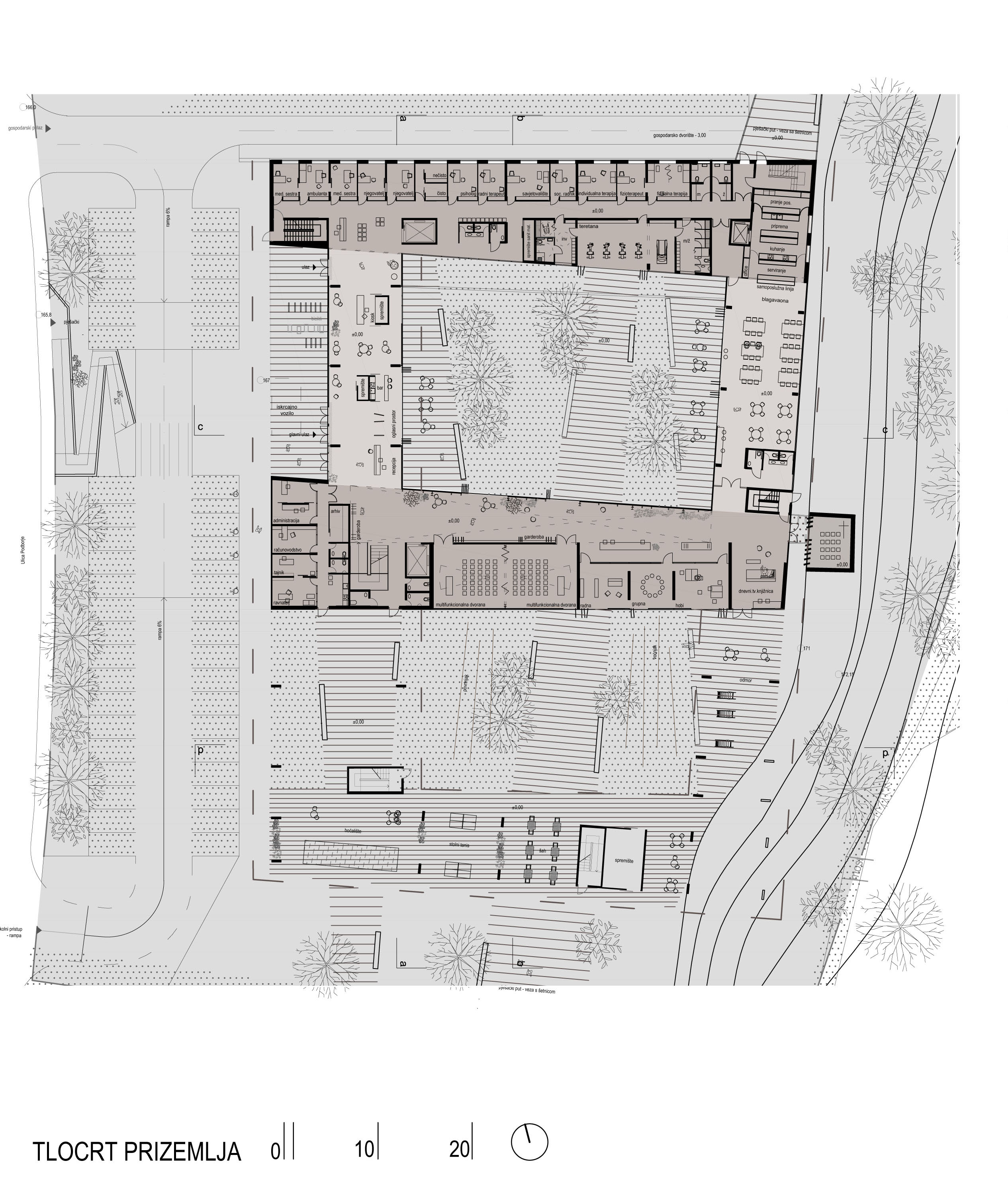 Status: idejni projekt, natječajni radNamjena: javna namjena, stalni i privremeni boravak, zdravstveni turizamBruto površina: 7505 m²Projektirano: 2015