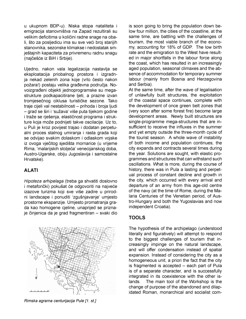 Tri škole su se tijekom dva semestra bavile temom planiranja i projektiranja dijelova Pule koja je zajednička poveznica rada, a kroz izložbu će se moći simultano komparirati tri pedagoška pristupa i njihovi različiti doprinosi u problemskim fokusima, idejama, mjerilima i načinima prikaza projektnih prijedloga.